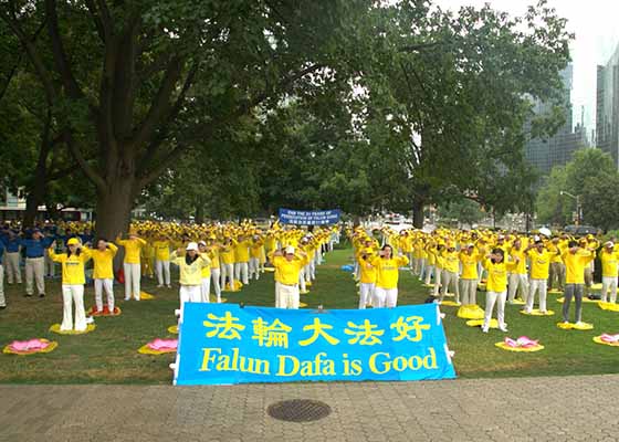 七月十三日加拿大部分法轮功学员及支持者一千多人聚集多伦多市中心,在安省议会大楼前举行集会,谴责中共26年来对法轮功的残酷迫害。