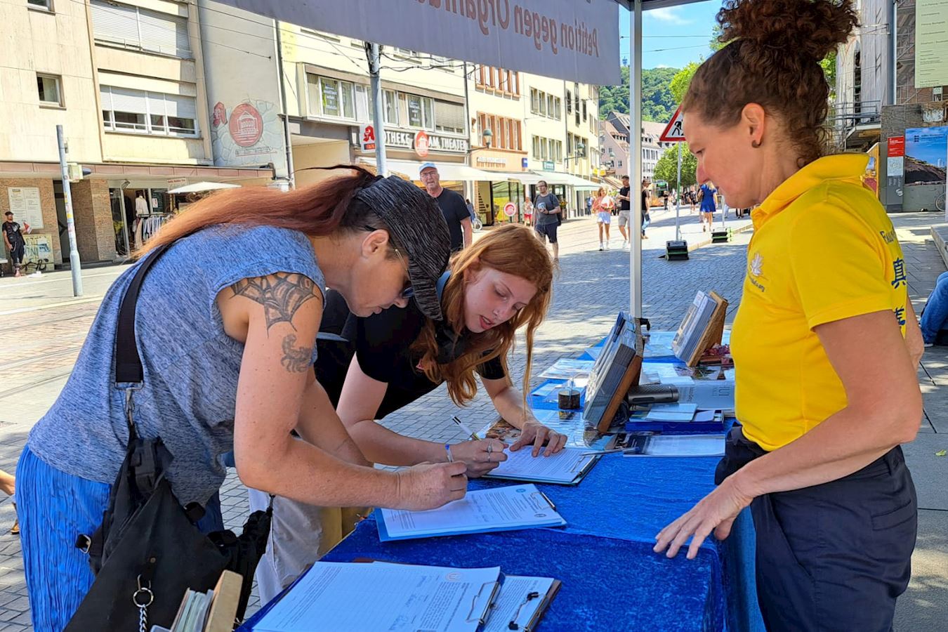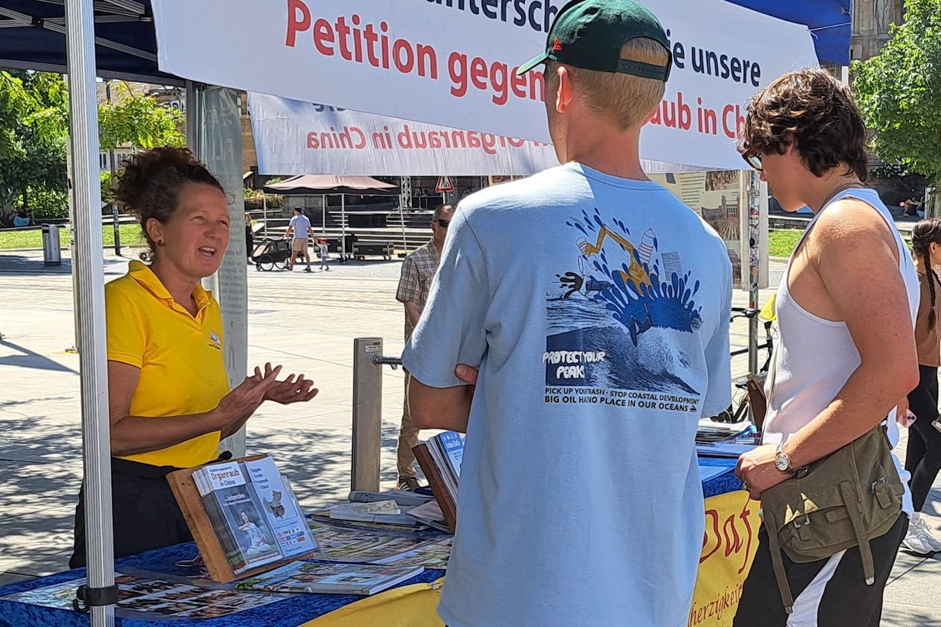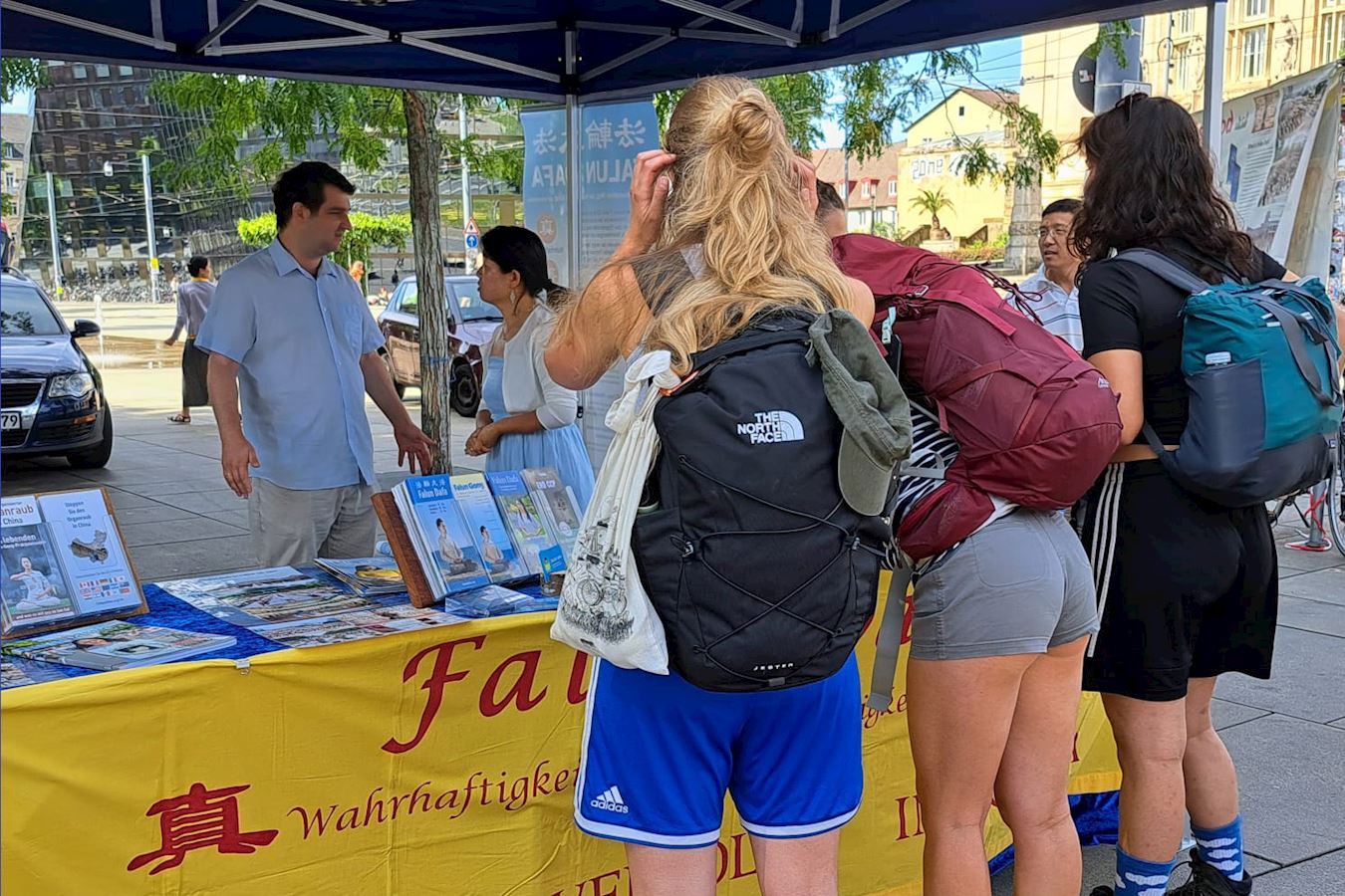 ![]() 图1~4:二零二五年七月十二日,德国法轮功学员在弗莱登堡大学前老犹太教堂广场举办法轮功信息日,人们驻足和法轮功学员交谈,了解法轮功真相。 |