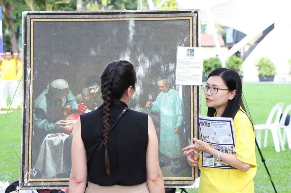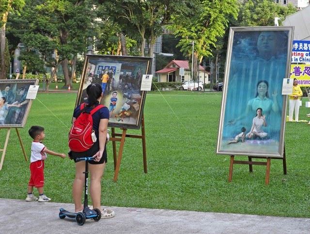 当天因缘际会来到活动现场的除新加坡本地人外,还有来自英国、法国、德国、奥地利、捷克、芬兰、西班牙、美国、马来西亚、印度、缅甸和中国等不同国家的游客、学生和工作人士。在一片祥和的氛围中,人们主动向法轮功学员了解真相,并谴责中共暴行。