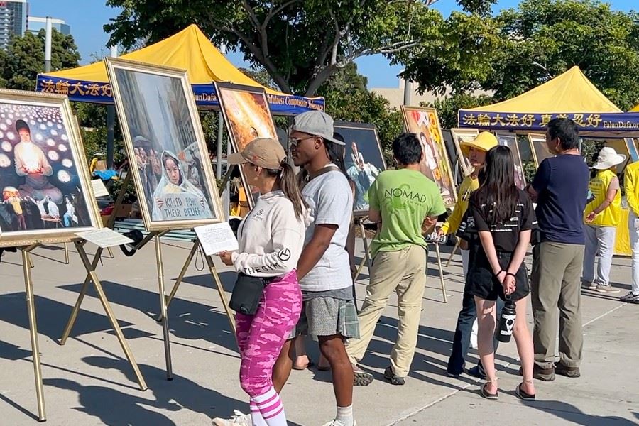 【明慧网二零二五年七月十八日】二零二五年七月十二日,在法轮功学员和平理性反迫害26年之际,美国加州圣地亚哥法轮功学员在当地海湾公园举办真善忍画展和烛光夜悼,并为呼吁美国参议院通过《法轮功保护法案》向民众征签,同时让他们了解并警惕中共正加剧把对法轮功的迫害延伸至美国,当地政要出席并为活动颁发了褒奖。