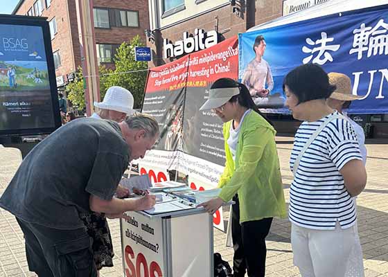 芬兰罗瓦涅米法轮功反迫害 民众支持