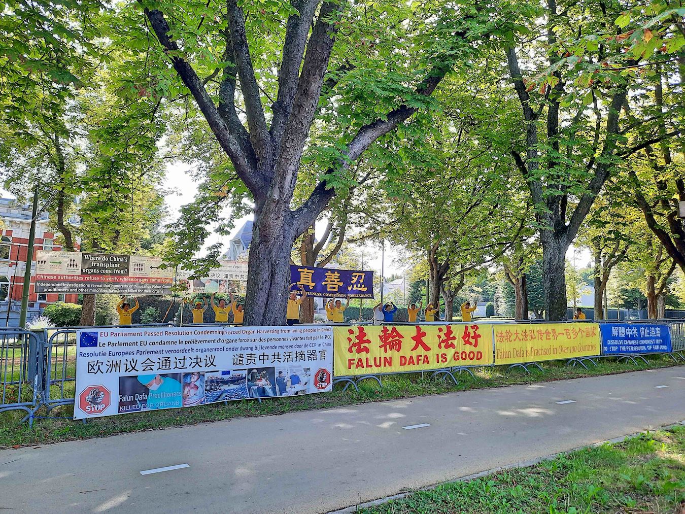 他还分享了一次参与布鲁塞尔活动的经历,“我记得一次我们在布鲁塞尔举办和平讲真相活动时,受中使馆指使的多名青年(看似留学生),打着中共国旗,故意干扰我们的活动,其中一名男子直接坐在我们炼功场地中间,并且不听劝说;带头的女子情绪极度失控,大喊大叫,最后被警方带走。”