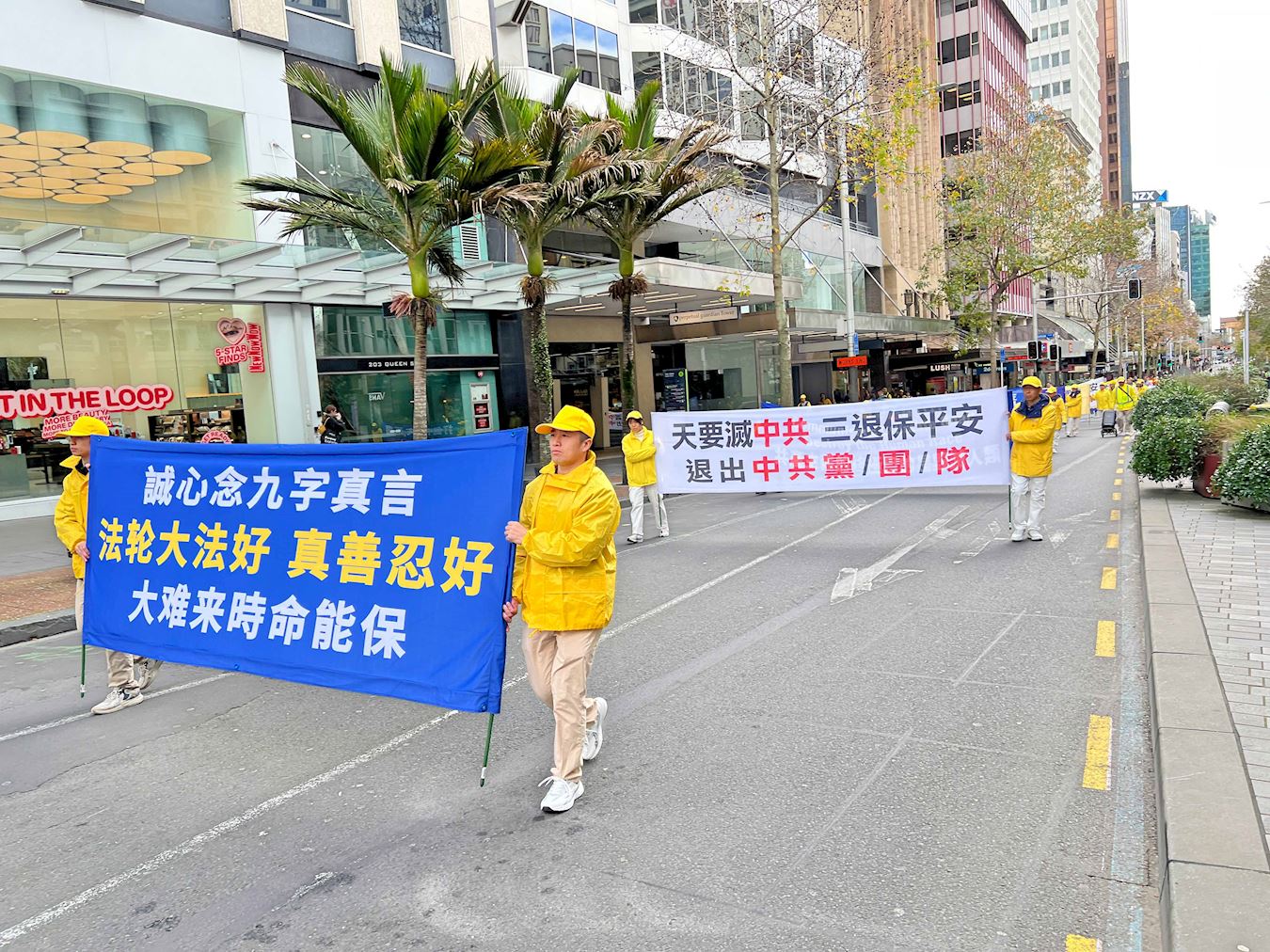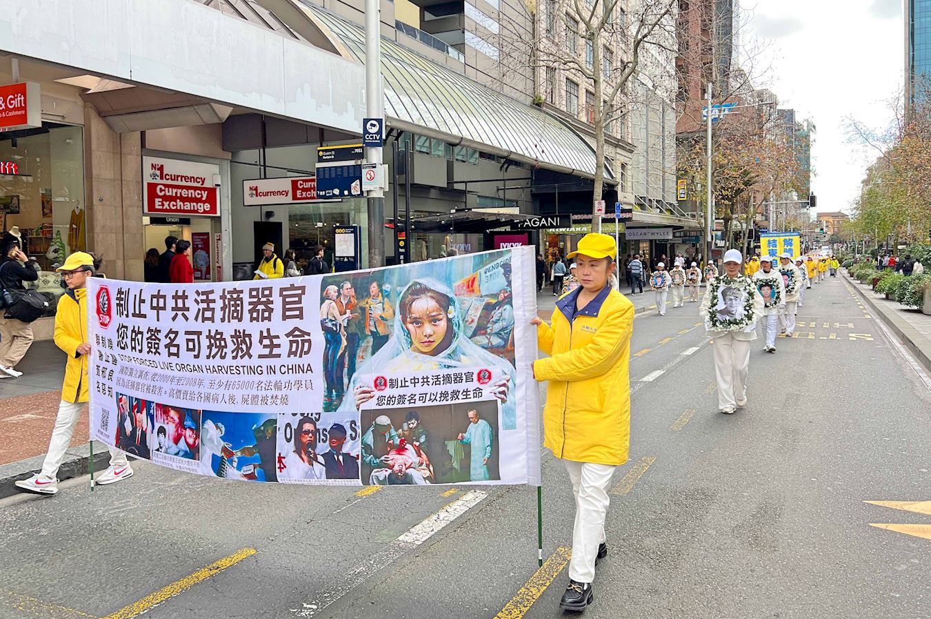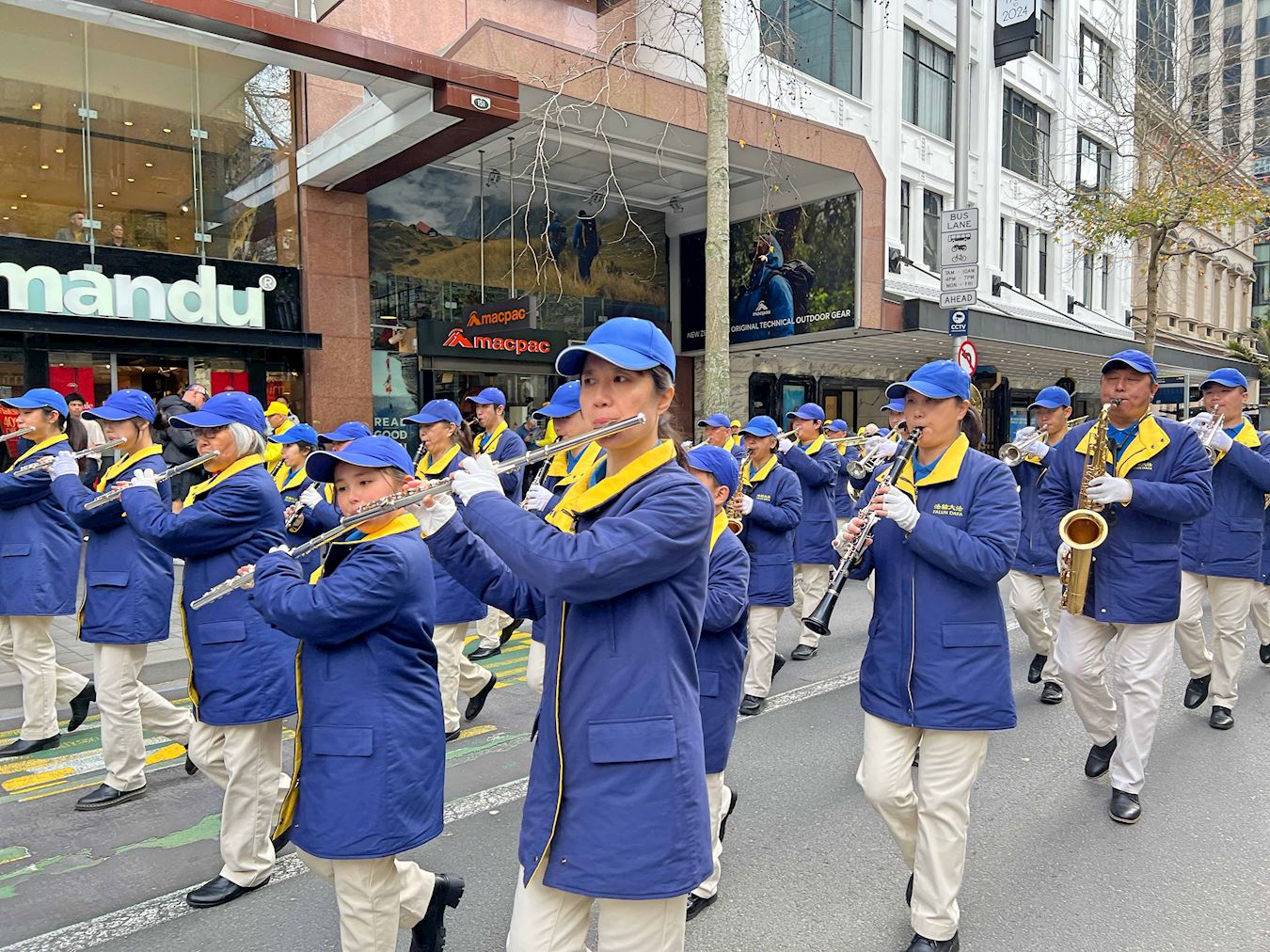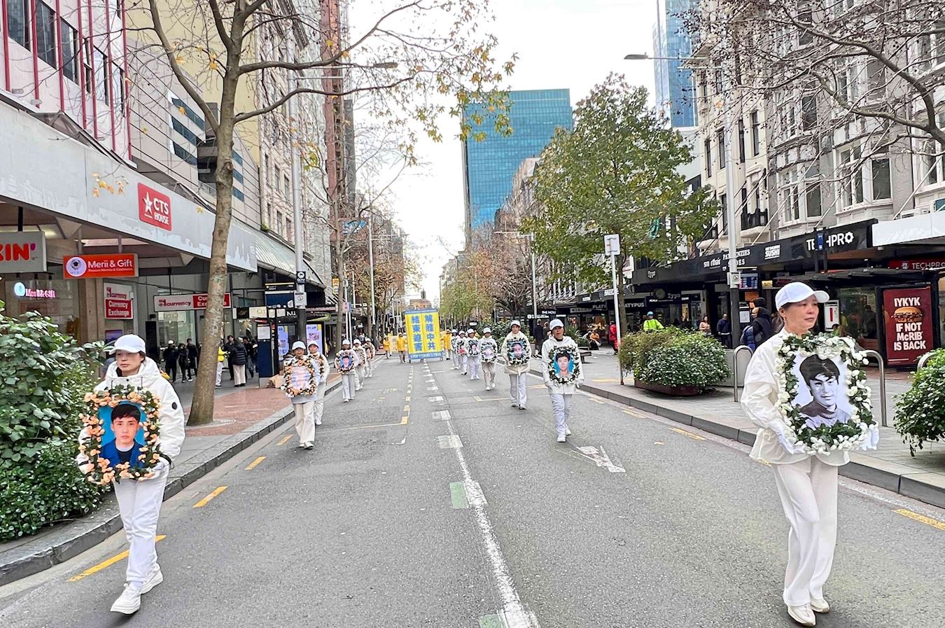 '图1~14:二零二五年七月十九日星期六,新西兰法轮功学员在奥克兰市中心皇后大街游行,反对中共长达二十六年的迫害。'