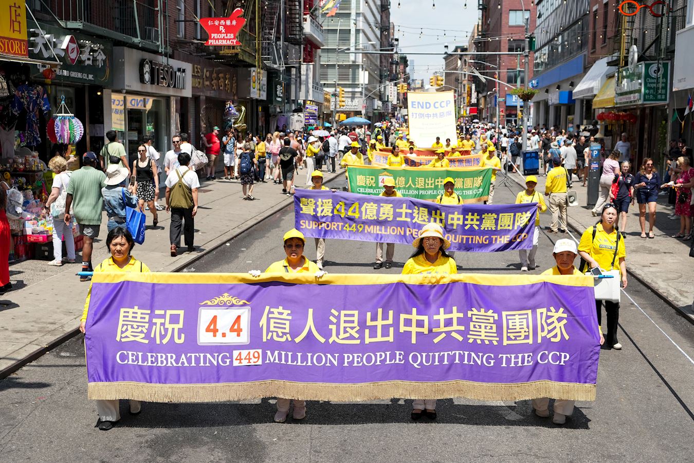 【明慧网二零二五年七月二十一日】二零二五年七月二十日,纽约及周边地区的数千位法轮功学员在曼哈顿华埠举行了“7‧20”大游行,呼吁结束中共长达二十六年对法轮功的迫害,并声援4.49亿中国人退出中共党团队组织。纽约民众纷纷驻足观看,对法轮功学员坚持反迫害的坚守表示感佩。