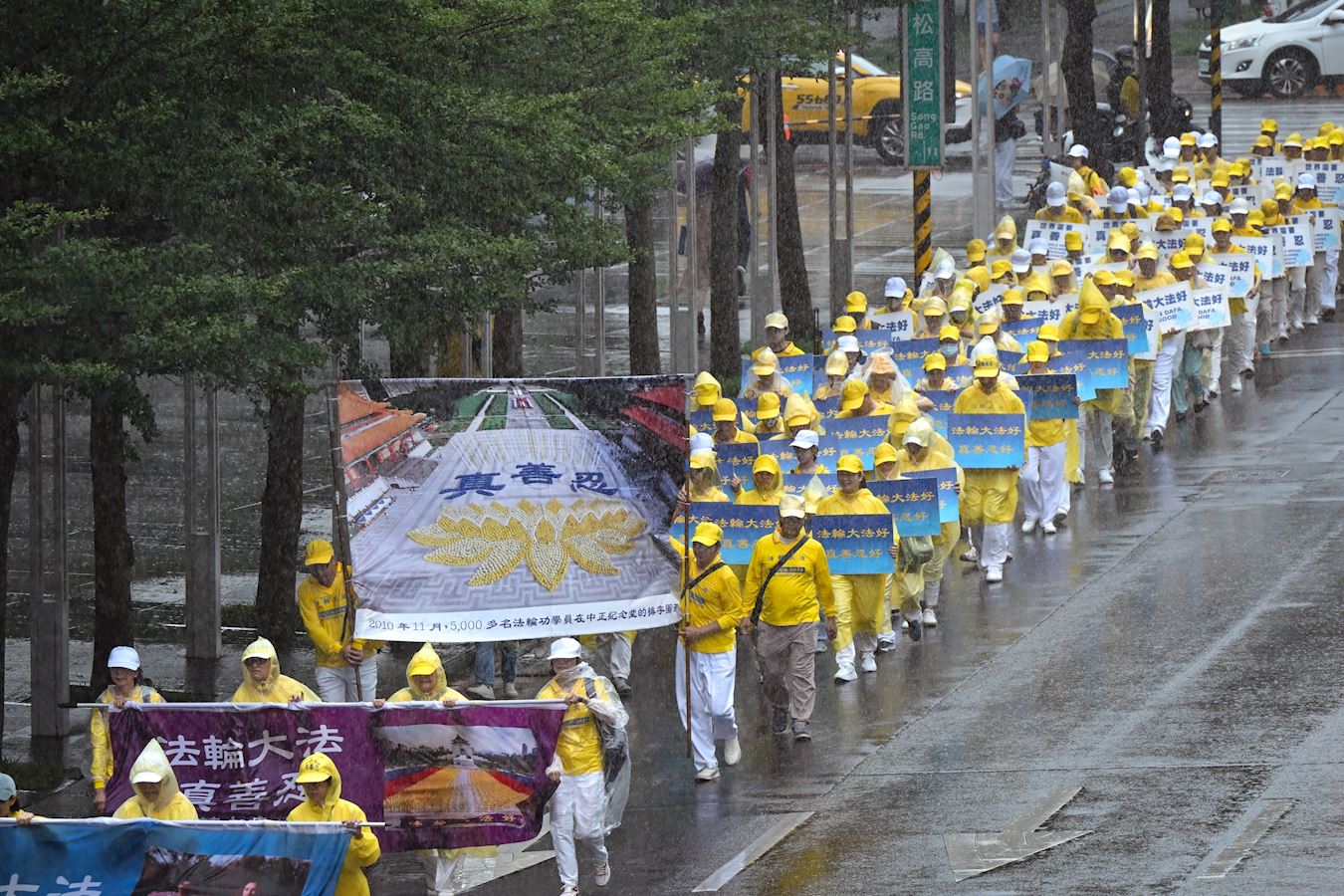 这次游行队伍分为“大法洪传”、“千古奇冤”、“三退大潮”、“结束迫害”四大方阵,从台北市政府市民广场出发,经过逸仙路、松高路、松仁路、松寿路、基隆路,再回到市政府前。