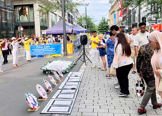 7月19日,法轮功学员在德国北威州首府杜塞尔多夫举行反迫害26年集会,悼念在中国被中共迫害致死的法轮功学员,揭露中共残酷迫害手段。
