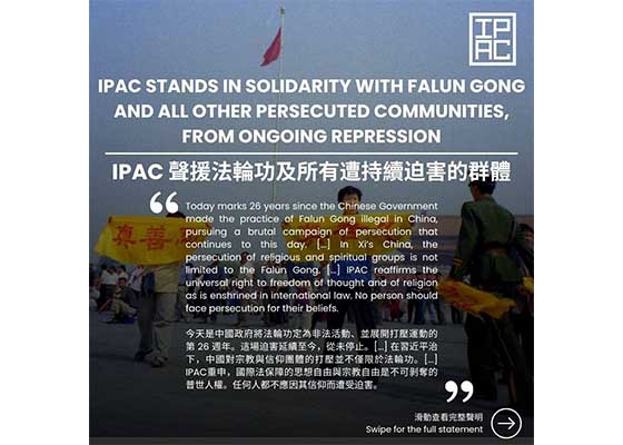 IPAC发表声明:声援法轮功及所有被迫害群体