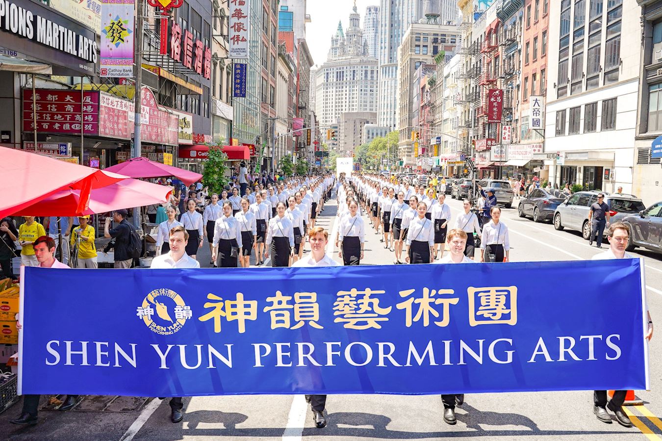 纽约法轮功反迫害26年游行数百神韵艺术家现身感动华埠民众