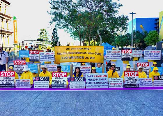 七月十九日,澳洲昆士兰法轮功学员分别在位于布里斯班市中心的布里斯班广场和凯恩斯,举行法轮功反迫害二十六年活动。