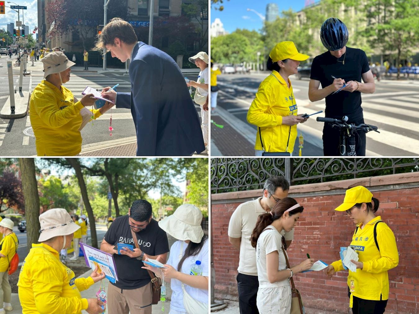![]() 图7~10:市民支持法轮功学员反迫害 纷纷在请愿书上签字 |