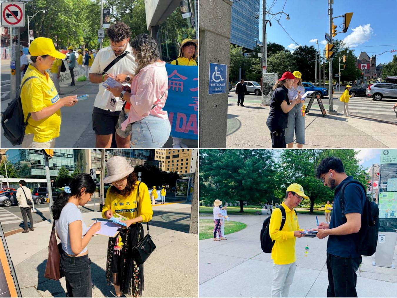 来往民众对法轮功学员反迫害表达了支持,他们纷纷在请愿书和反迫害明信片上签字,呼吁加拿大政府尽快采取行动,帮助停止这场对人权和信仰的迫害。