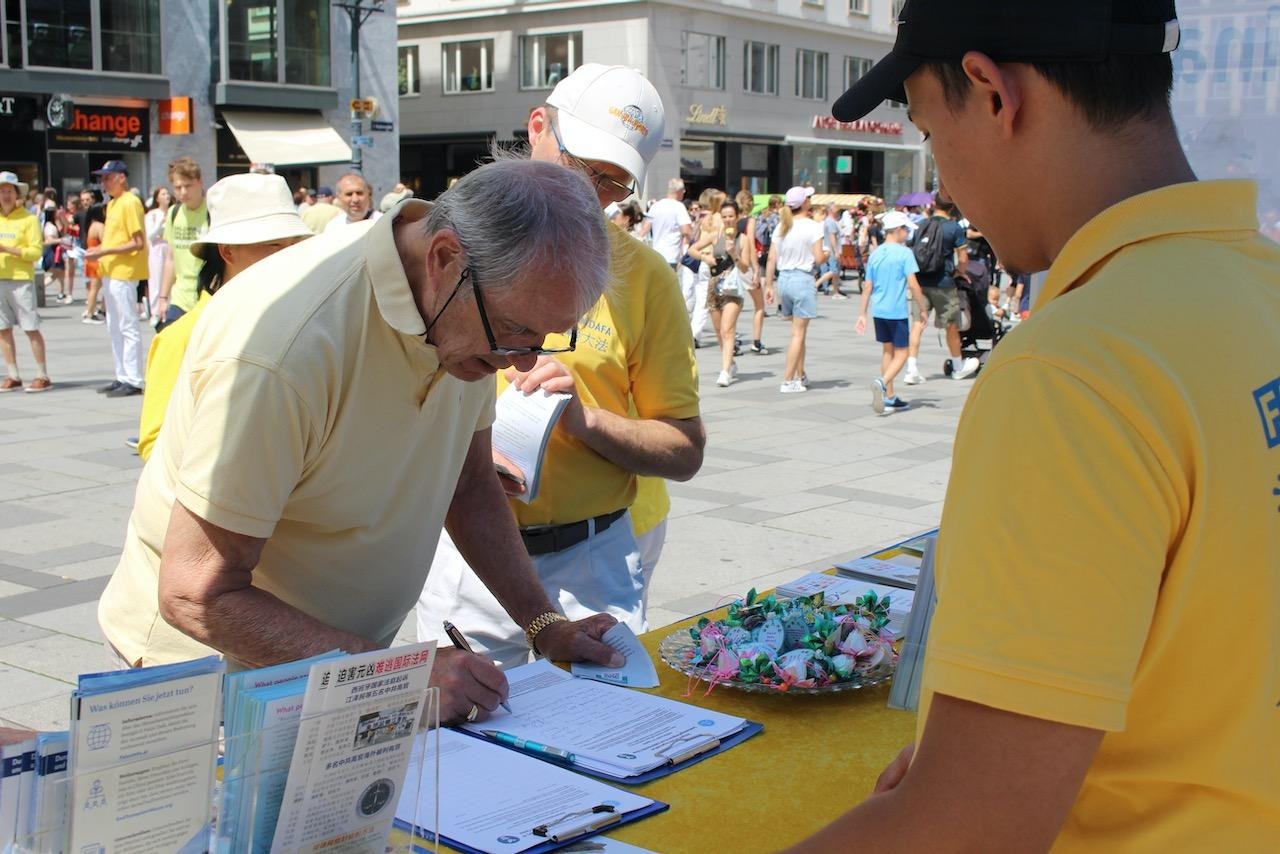 当天,维也纳人权办公室发表的声明,体现了政界人士对结束迫害的支持。 声明中写道:“保护人权,特别是保护少数群体以及思想和良心自由,是一项普遍的使命。作为一座人权城市,维也纳致力于这些原则,并积极努力确保这些权利在日常生活中得到践行。”