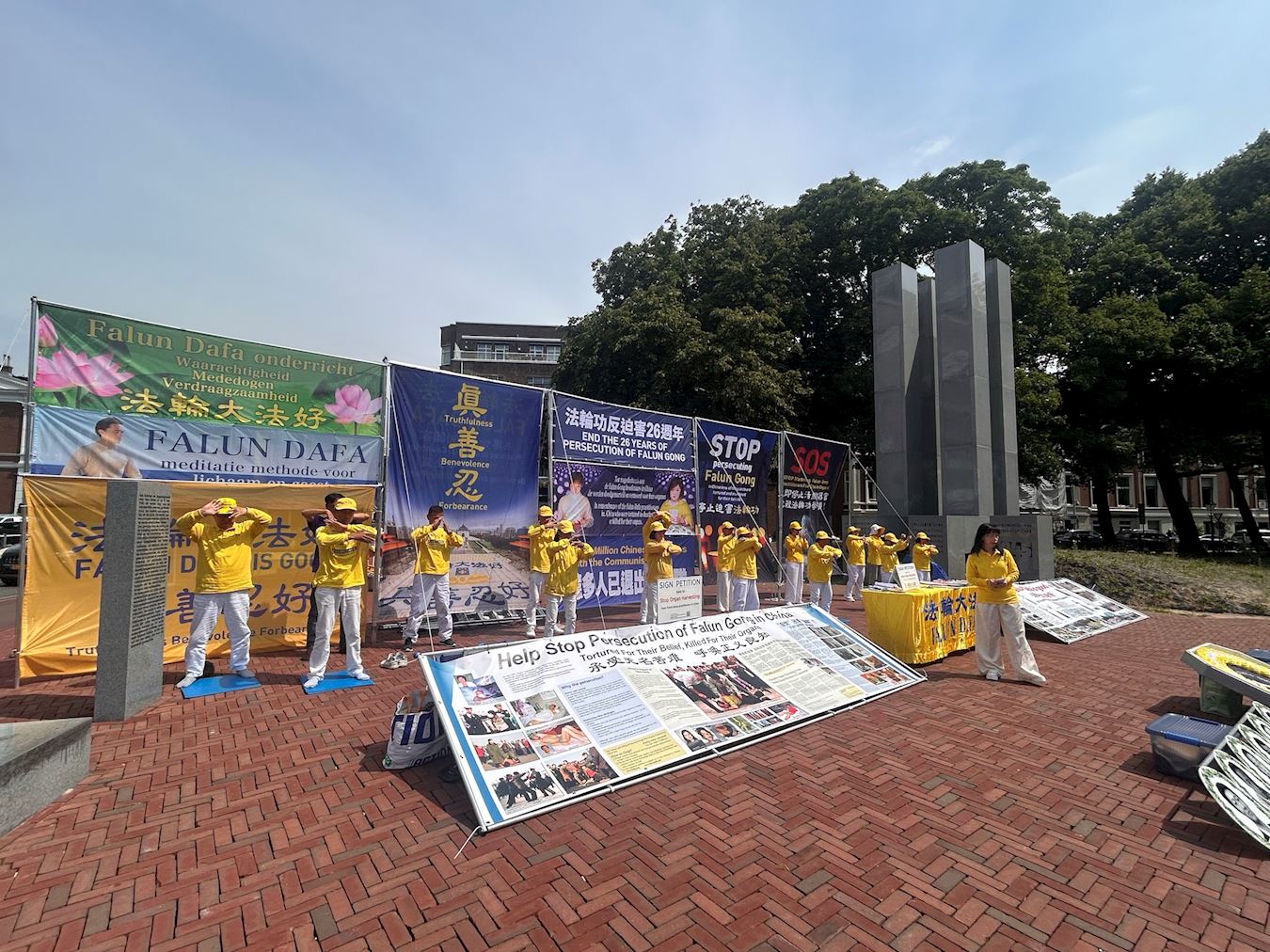 在漫漫二十六年的正法路上,荷兰大法弟子同世界大法弟子一道,长期坚持和平理性,坚忍不拔。唤醒了千千万万个民众,得到东西方民众的正义支持。中共政权开始非法迫害法轮功的日子,注定了中共必将走向灭亡。”最后她呼吁:“立即停止迫害法轮功,立即释放所有法轮功学员!”