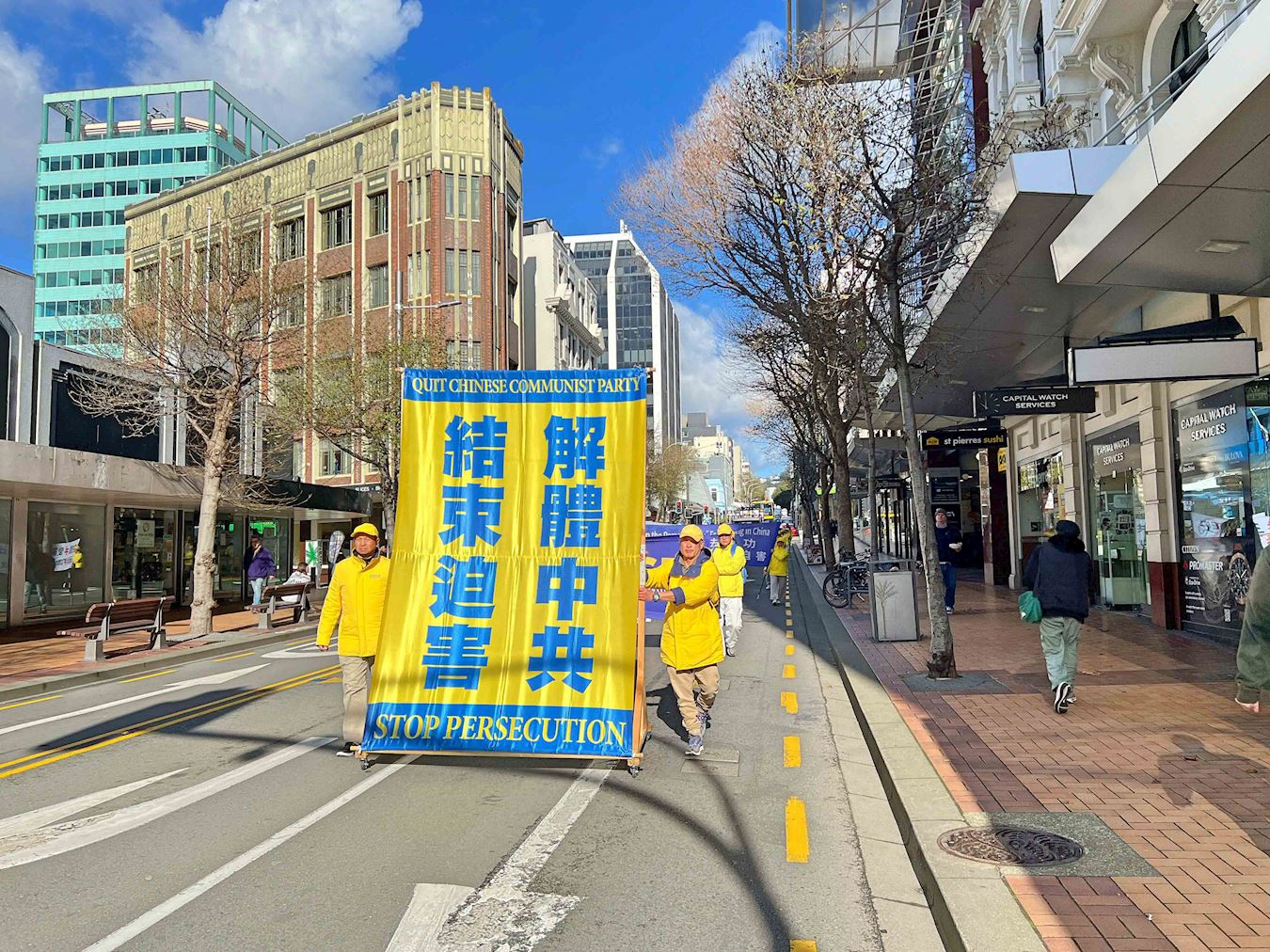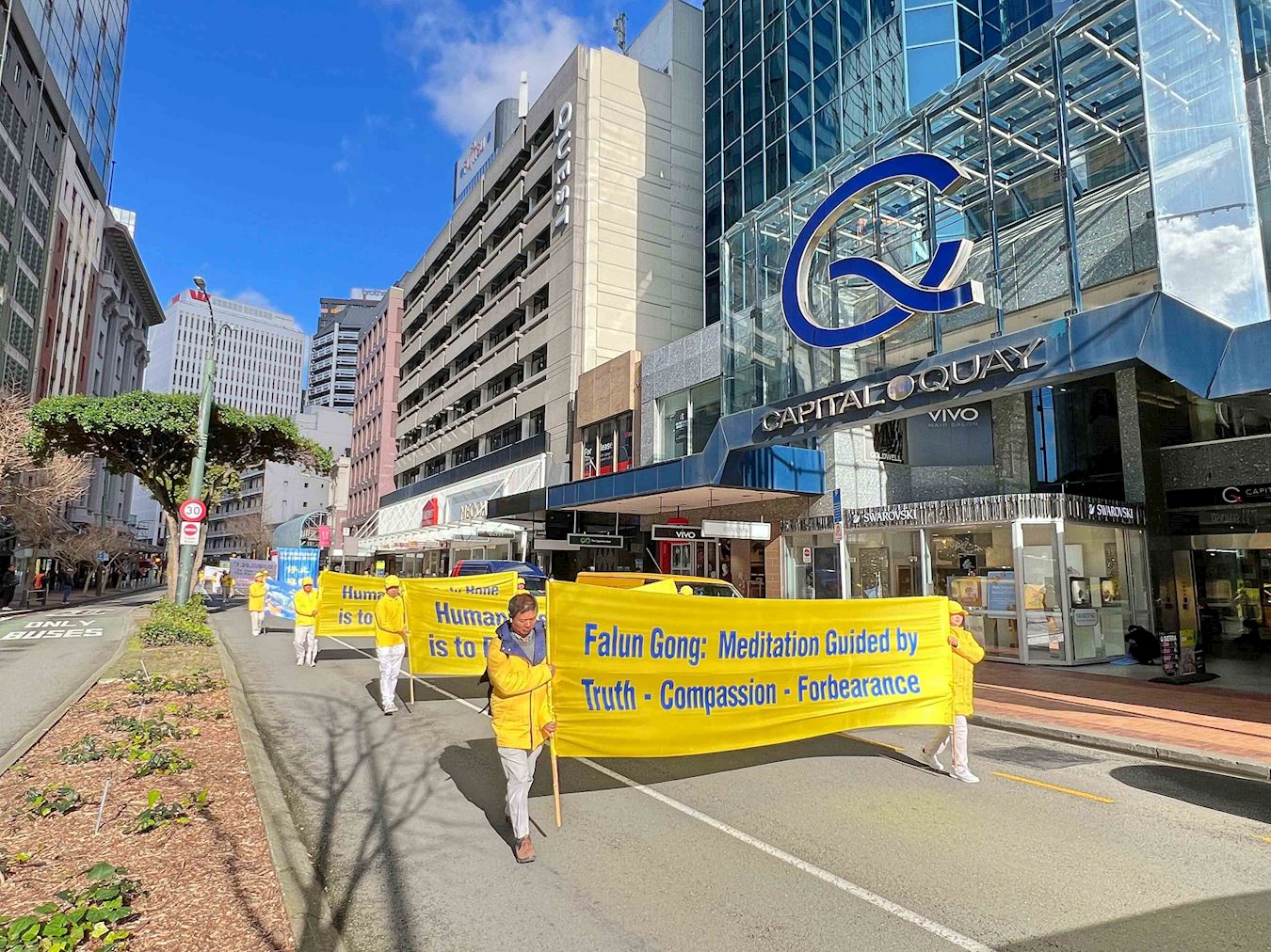 游行队伍从市中心古巴街出发,穿越繁忙的商业区,抵达新西兰国会大厦集会演讲,而后又游行至米兰公园(Midland Park)集会。他们用自己的亲身经历,揭露了中共的残酷迫害。