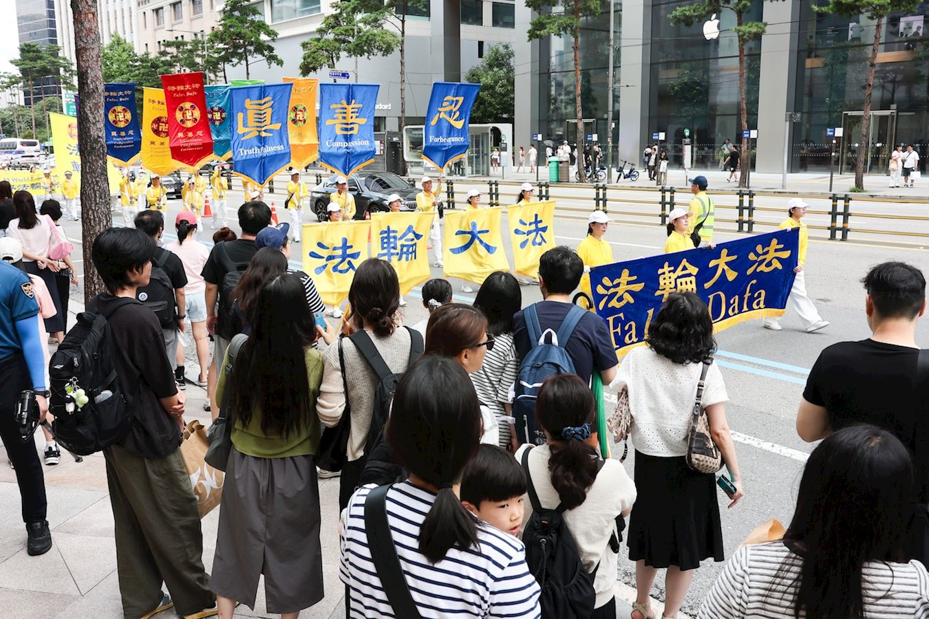 当游行队伍经过明洞时,记者遇到来自法国的游客克洛伊(Chloe)。她表示,坚决反对以任何形式对宗教信仰进行非法迫害,尤其是“强制摘取人体器官”这种行为,绝对无法接受。她说,游行的整体气氛非常和平祥和,天国乐团的演奏给她留下了非常积极的印象。
