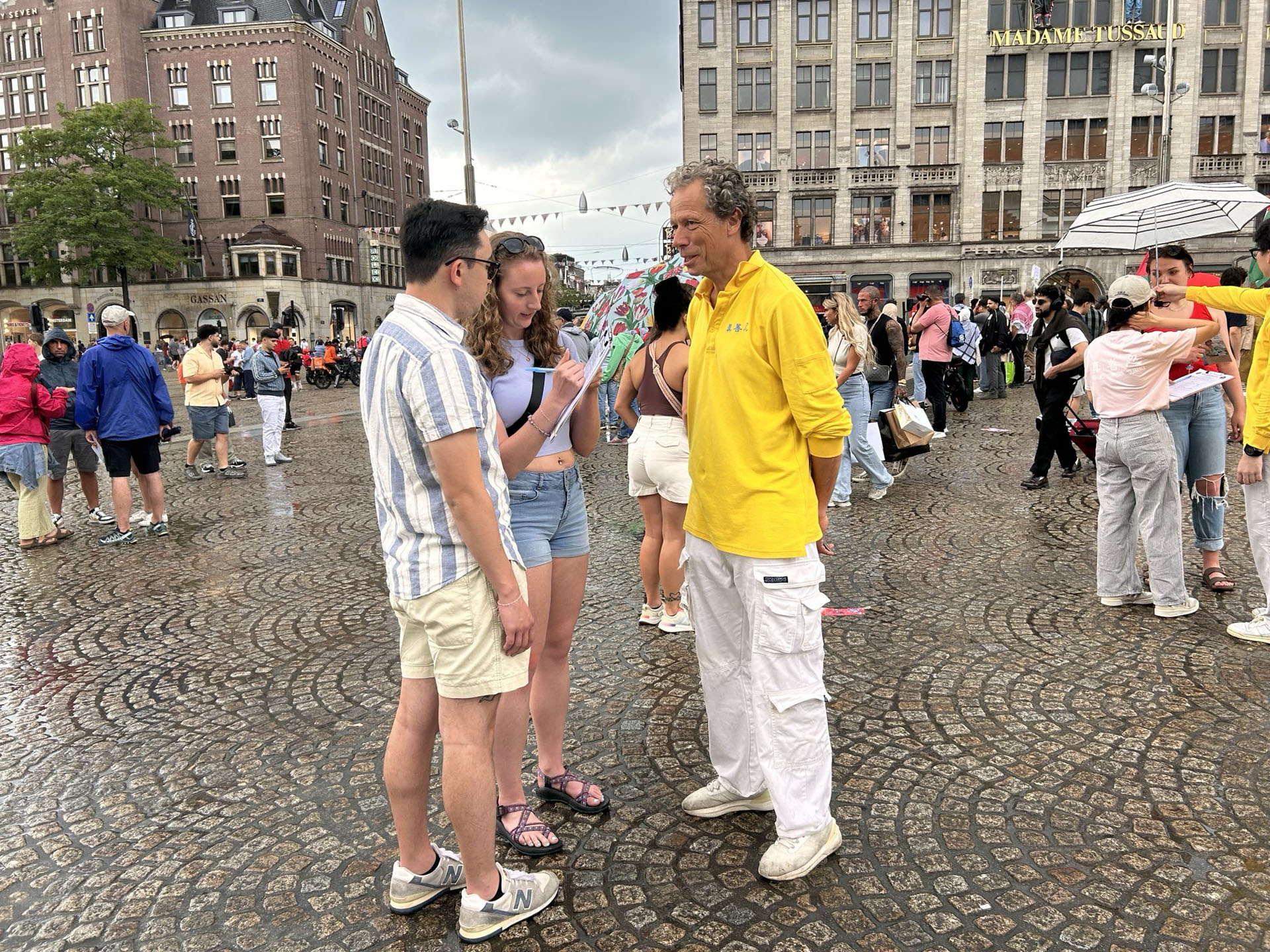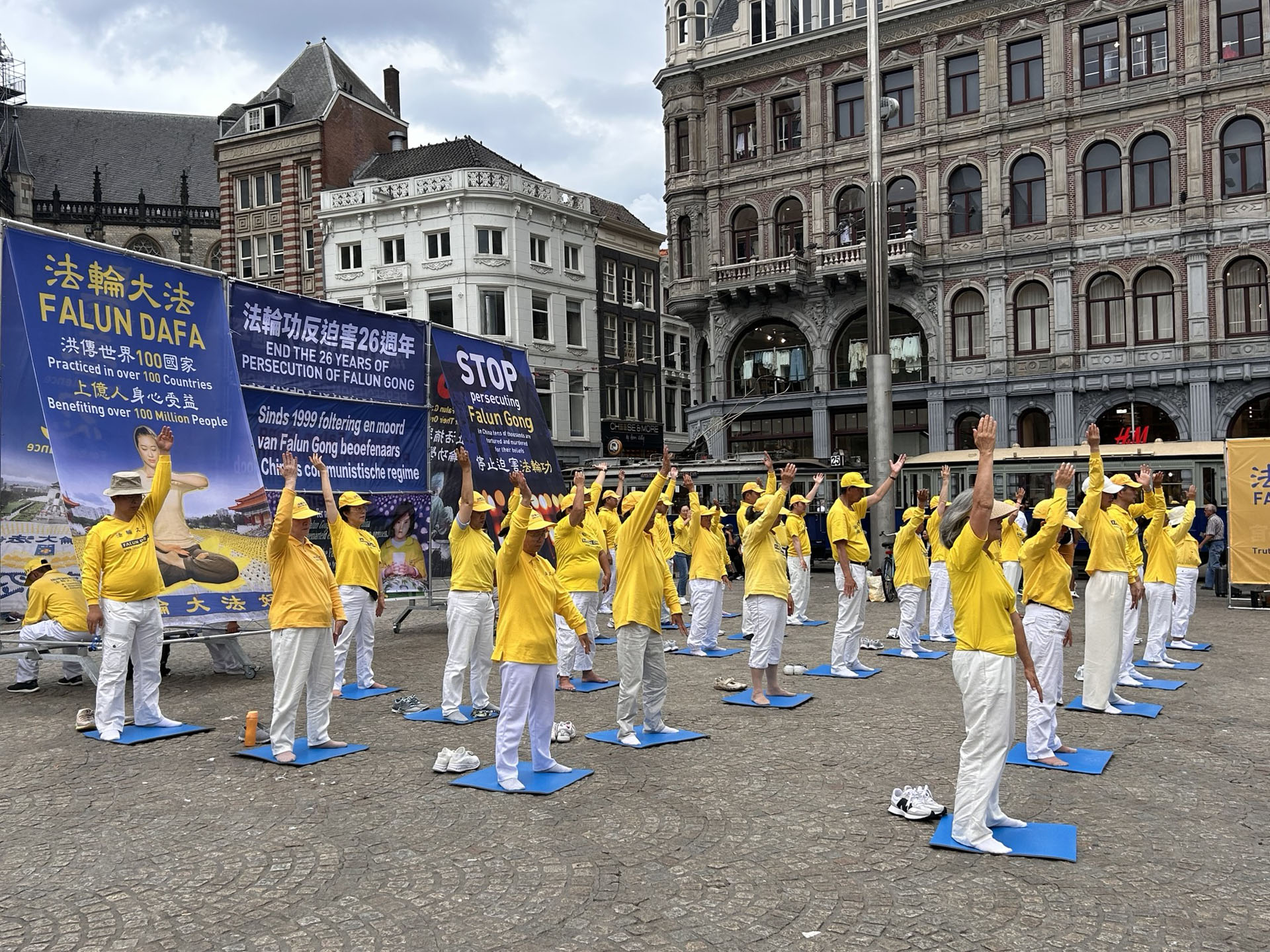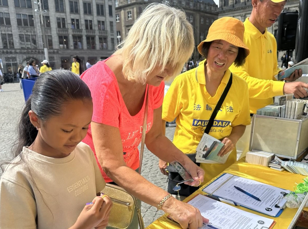 ![]() 图1~4:法轮功学员在阿姆斯特丹的水坝广场举行集体炼功,讲真相,悼念在中共残酷迫害中失去生命的法轮功学员。 |
