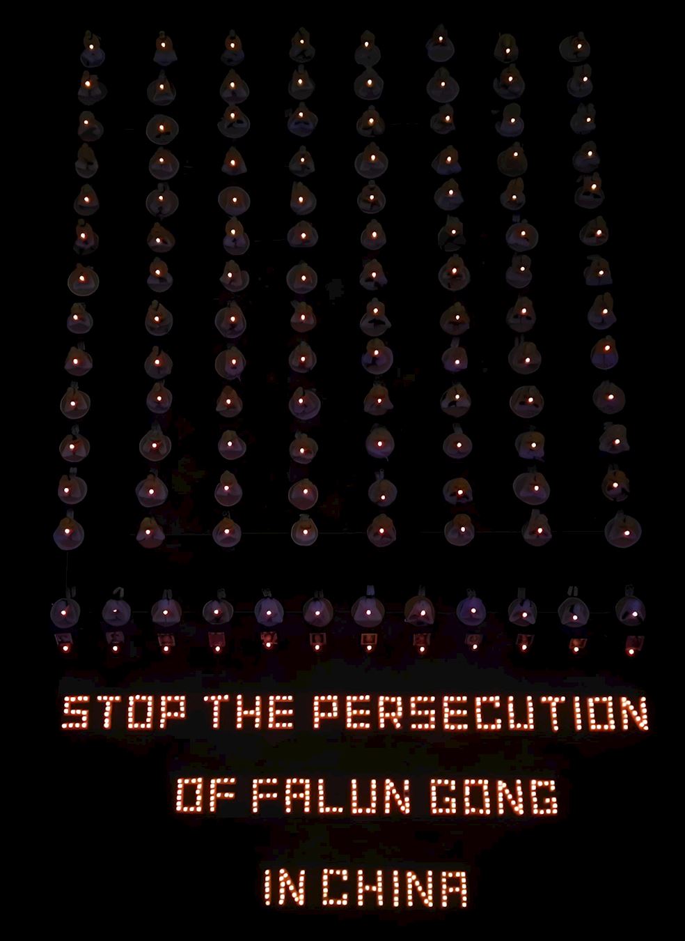 图13:唐卡斯(左)表示反对从法轮功学员身上非法摘取器官。