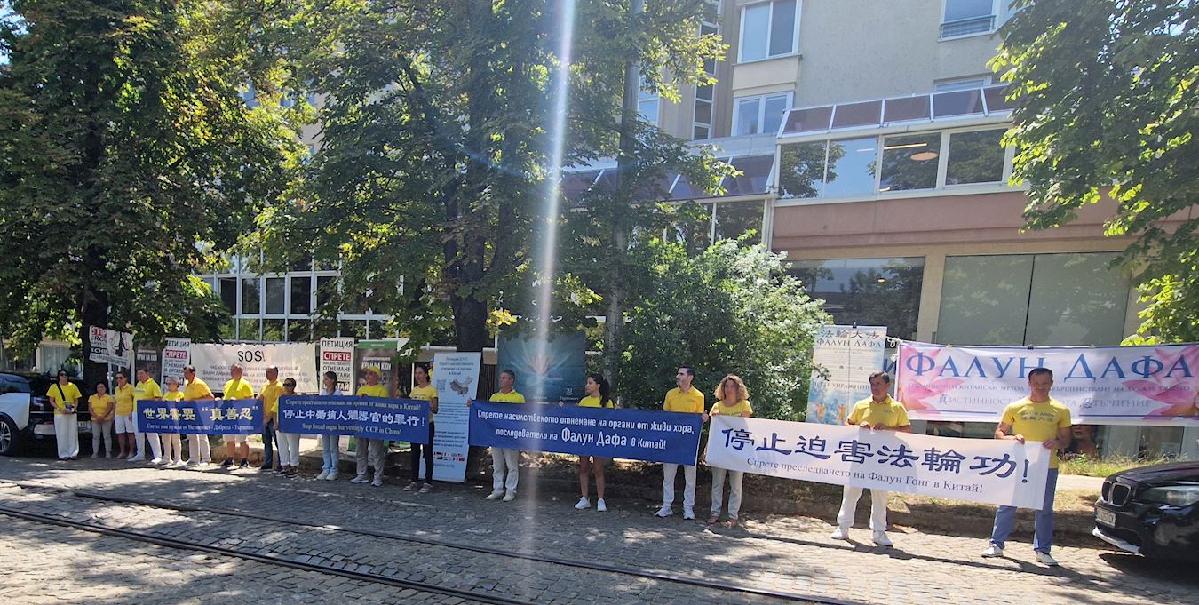 七月二十二日,来自保加利亚各地的学员们在中共大使馆前举办和平集会,抗议中共的残酷迫害,同时对身在大陆的学员们表达支持和敬意。