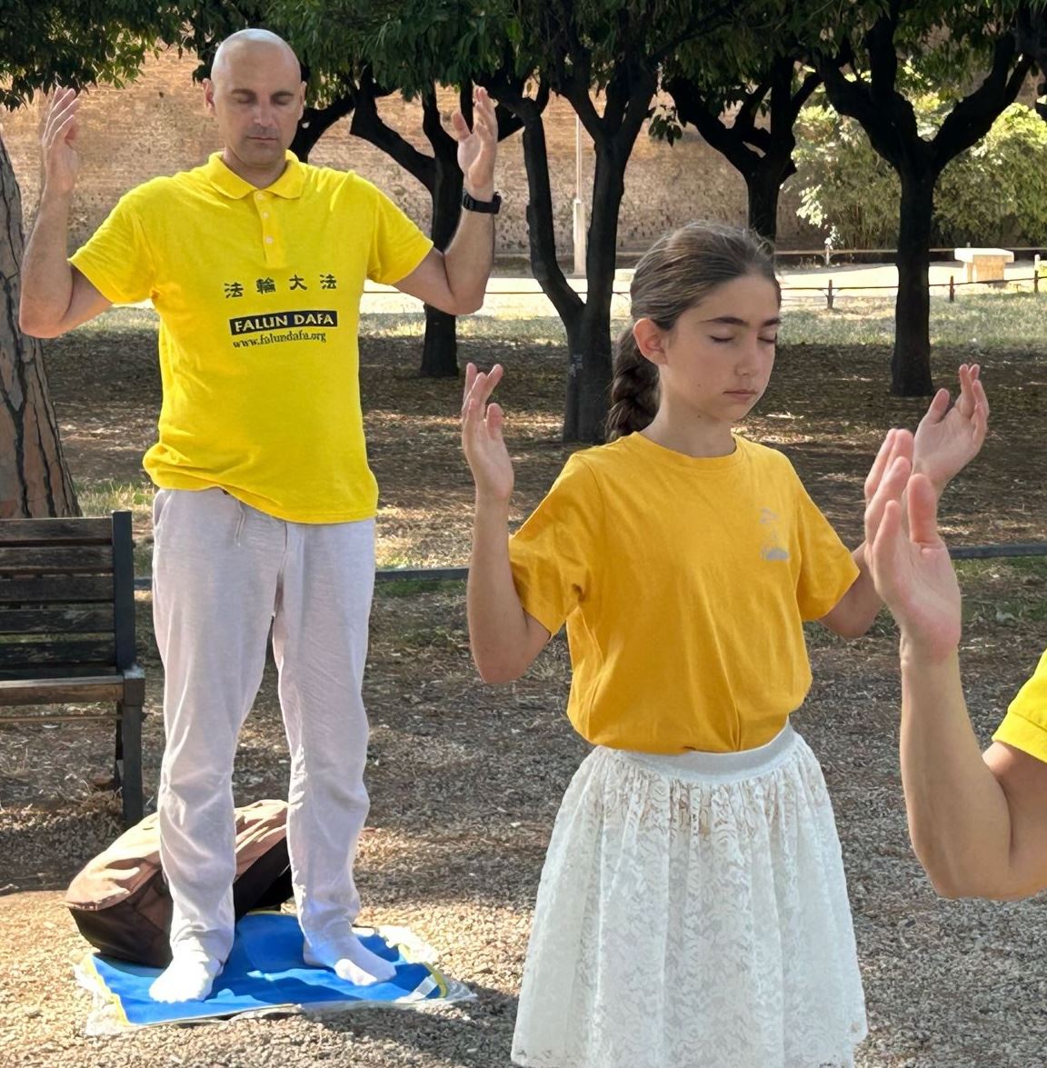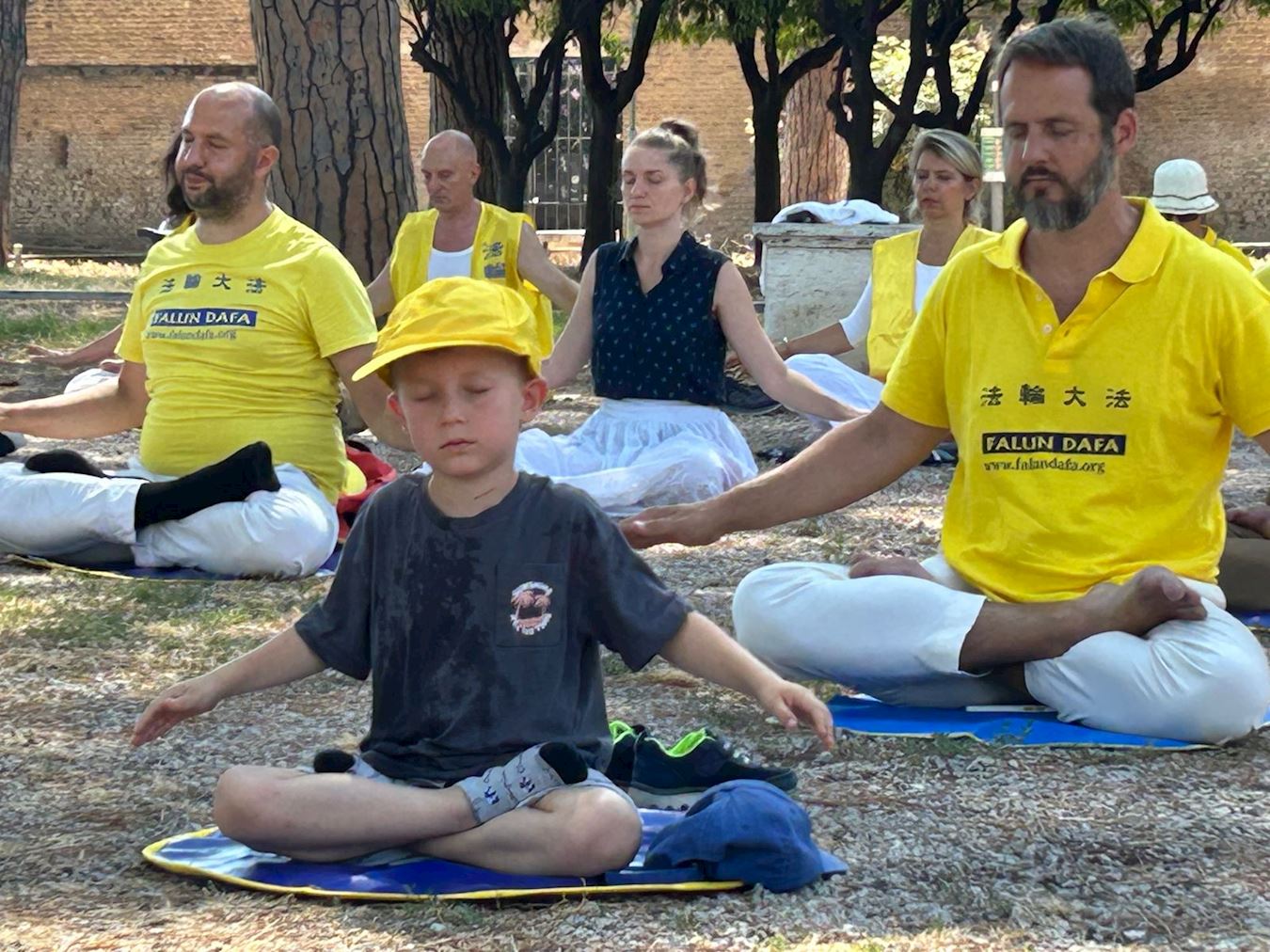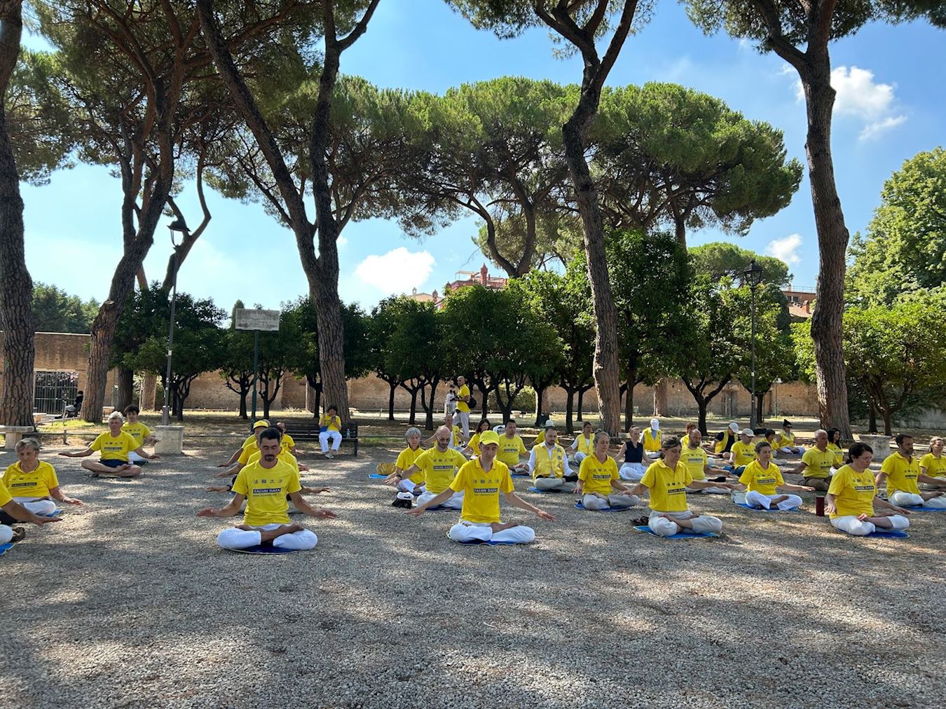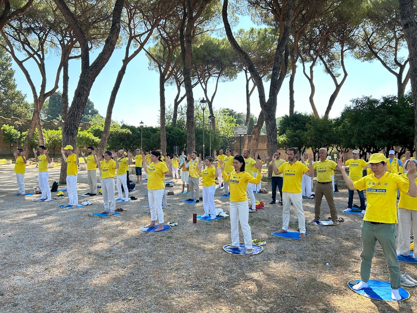 七月五日上午,法轮功学员来到首都罗马著名的橘子公园(Giardino degli aranci)集体炼功。