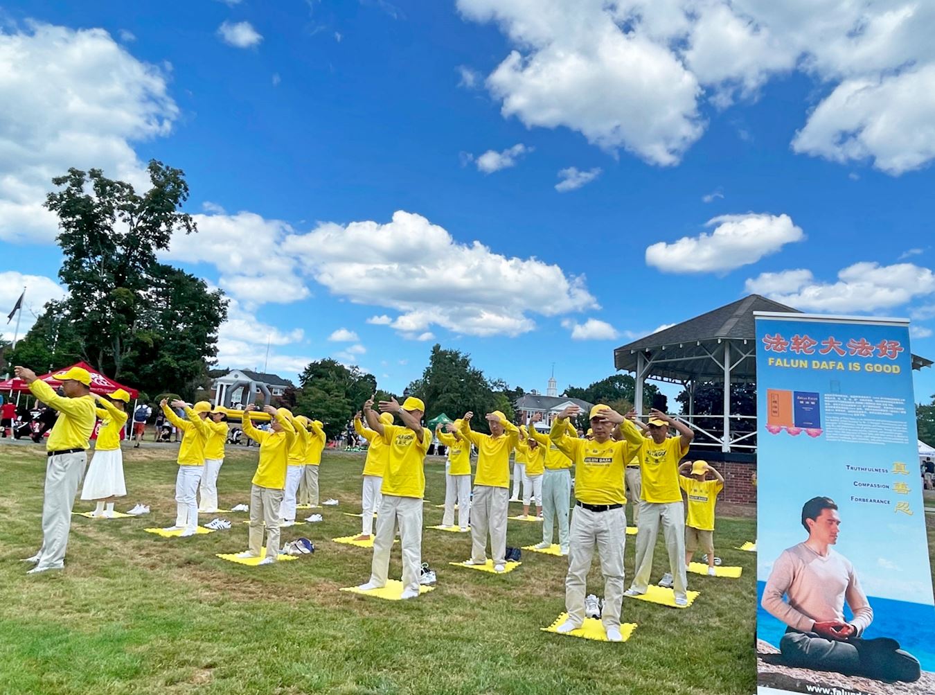 【明慧网二零二五年八月十日】二零二五年八月二日星期六,天气晴朗,阳光明媚。美国麻萨诸塞州和罗德岛州的部分法轮功学员参加了位于波士顿城北的伯灵顿举办的“欢庆伯灵顿(Celebrate Burlington)”活动。学员向人们介绍法轮功及讲述中共迫害法轮功的真相。