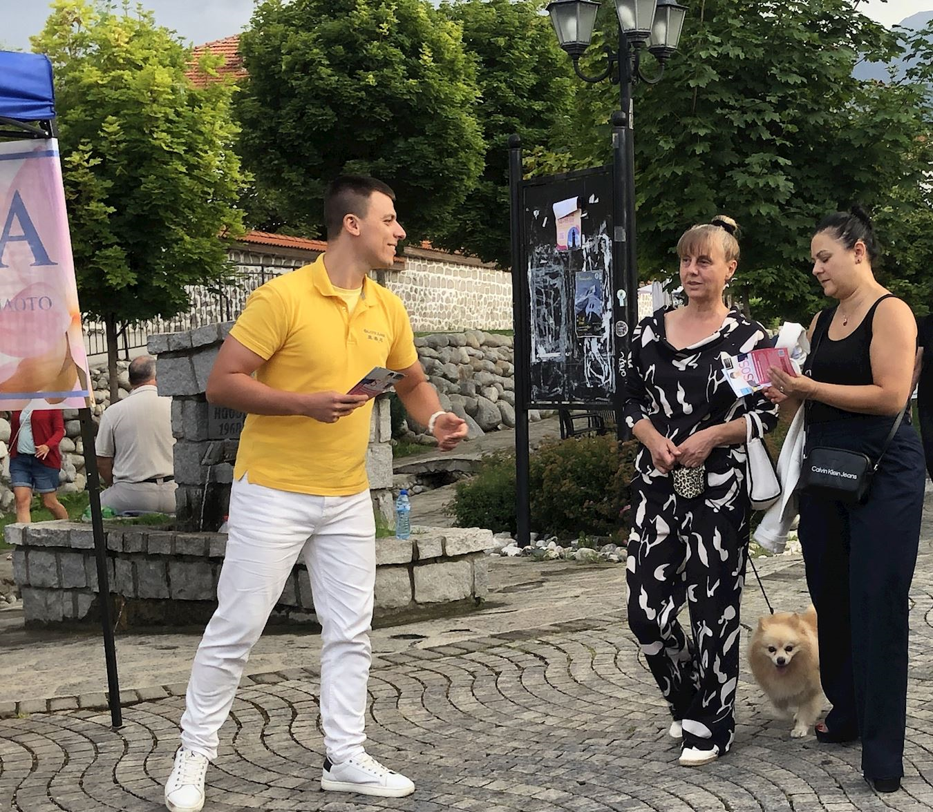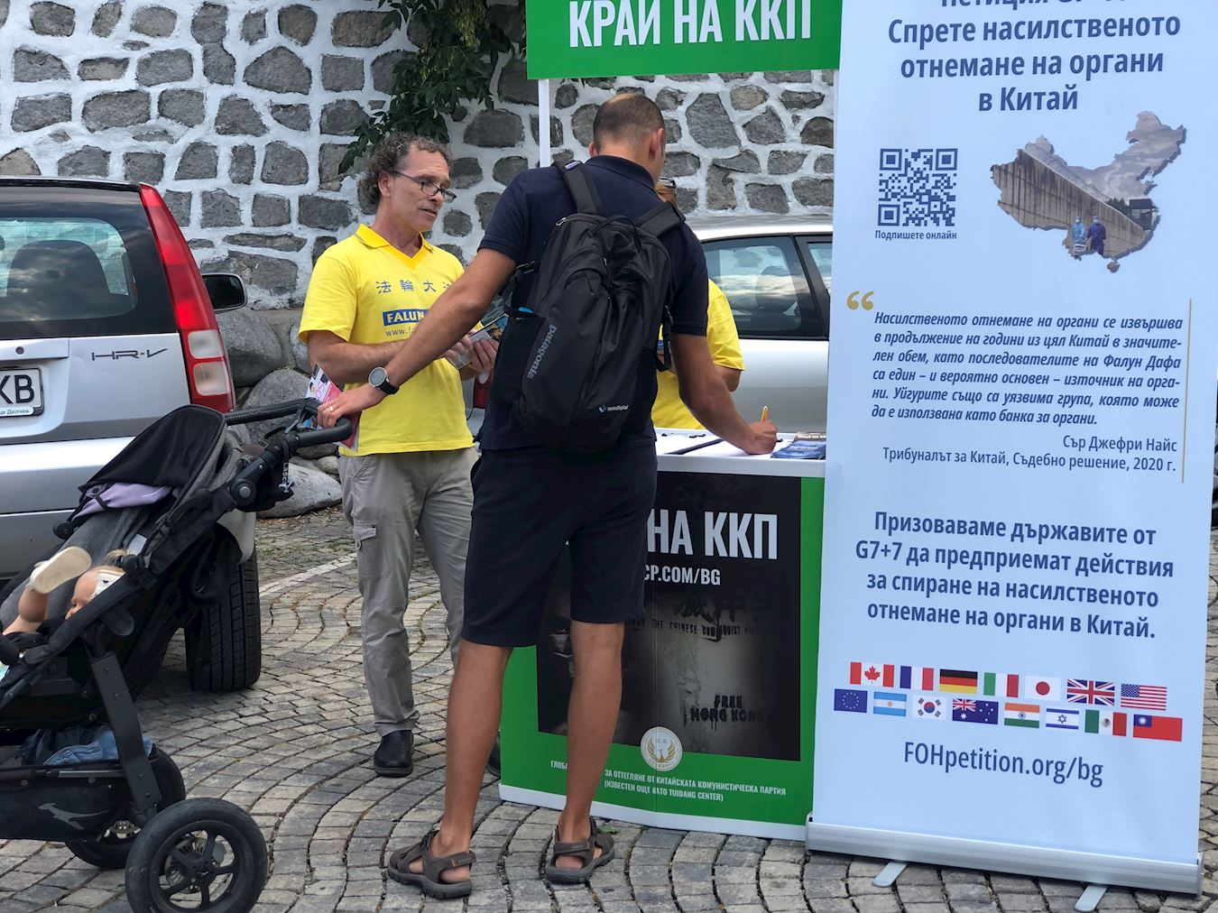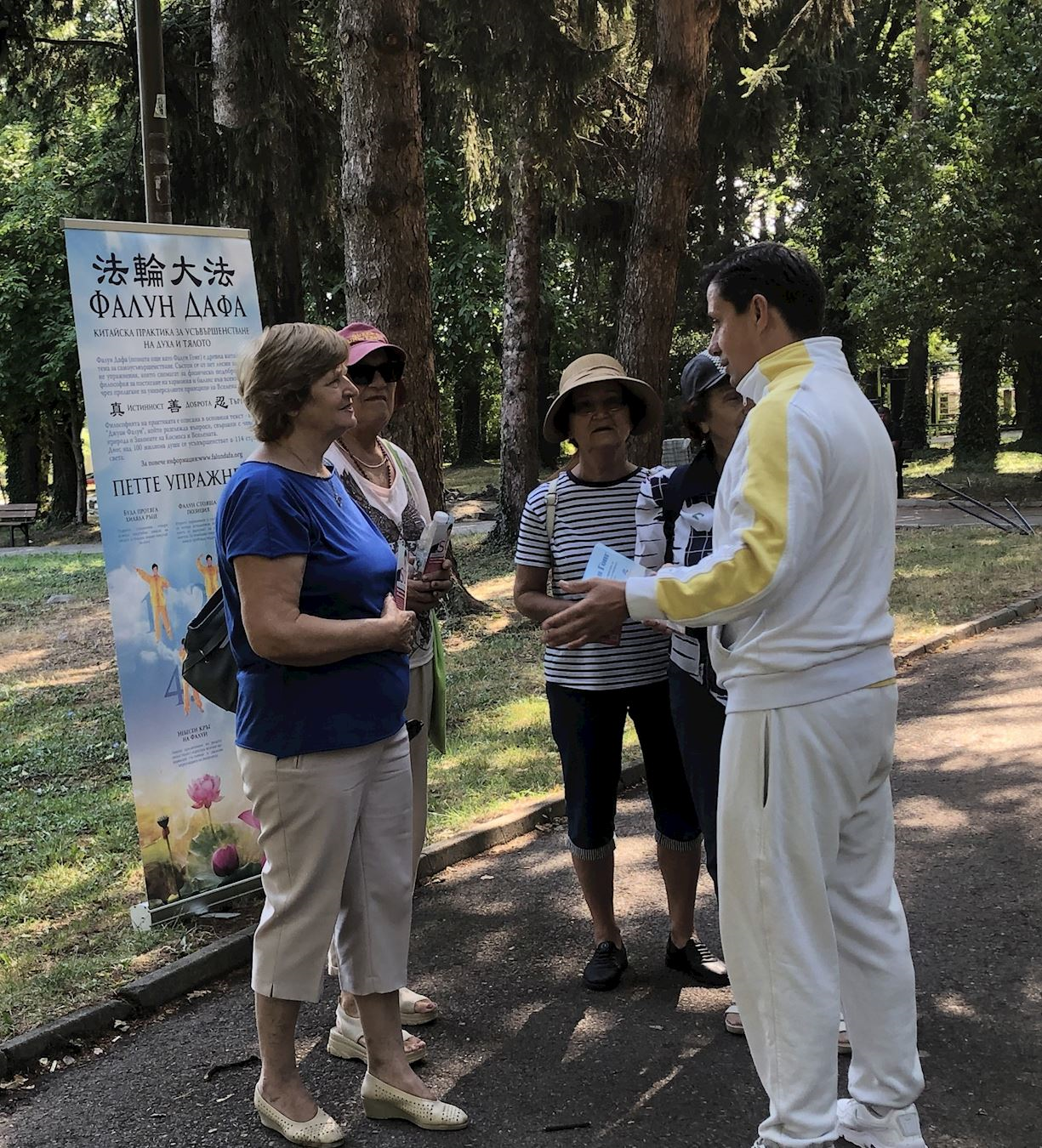 八月二日至三日,学员们在班斯科中央公园集体炼功,并向路人分发传单。八月二日下午,学员们在戈策·德尔切夫纪念碑(Monument of Goce Delchev)前设置信息台,向民众介绍法轮功真相,同时展示五套功法。许多人得知中共对善良的修炼人强制摘取器官的事实后,纷纷在请愿书上签名。