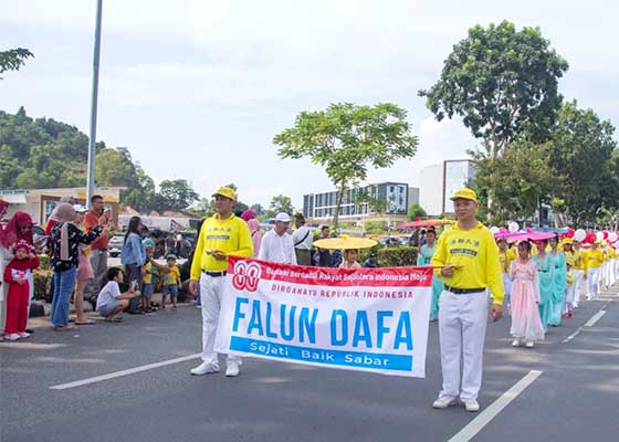 为庆祝印尼独立80周年,巴淡岛市政府8月10日举行了盛大的游行庆祝活动,法轮功团体应邀参加,赢得主办方和各行业民众的欢迎和赞扬。