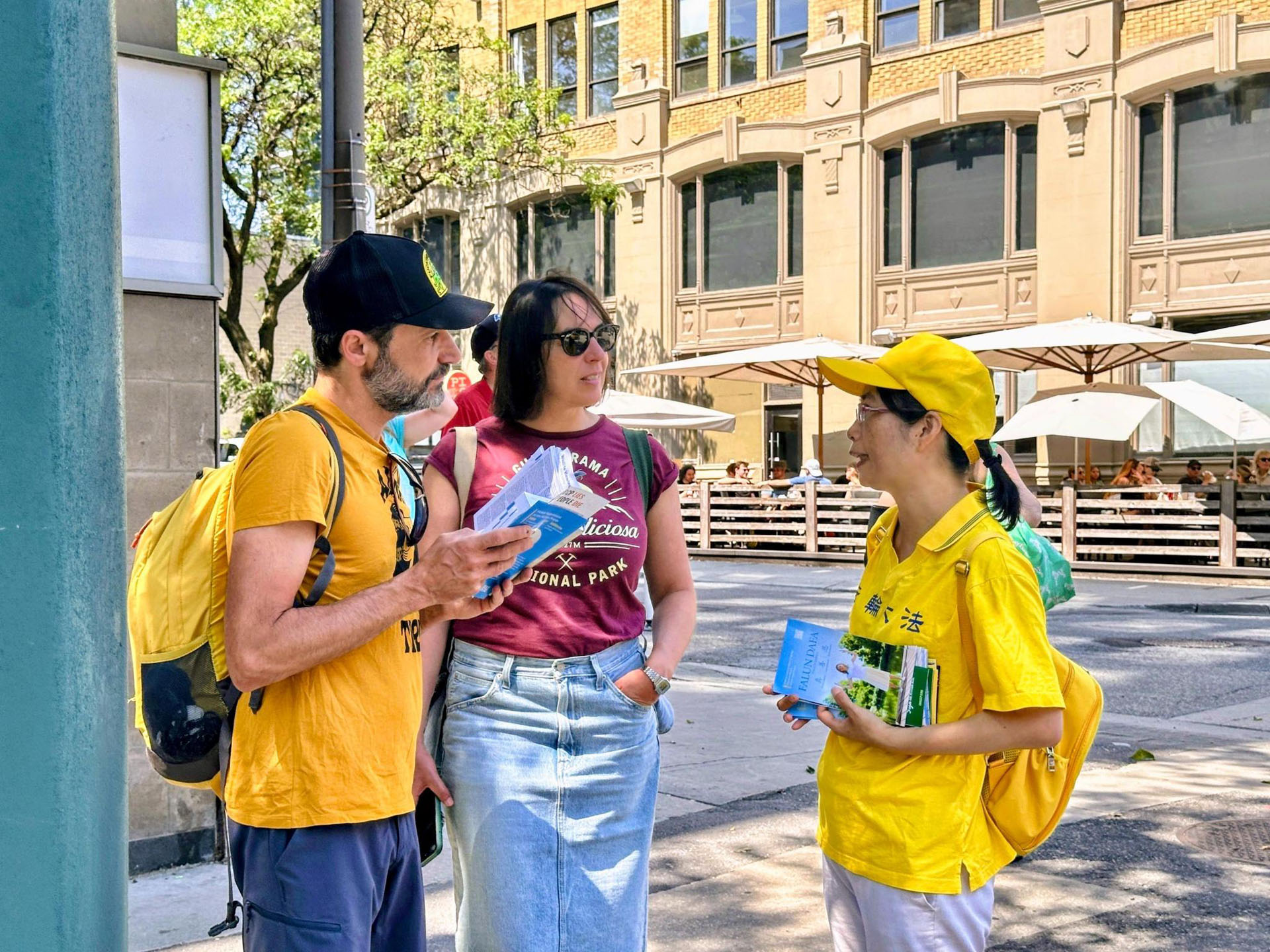 【明慧网二零二五年八月十八日】(明慧多伦多记者站报道)二零二五年八月十六日,加拿大多伦多法轮功学员在市中心唐人街附近的克莱伦斯广场公园(Clarence Square Park),举办“庆祝四亿五千万中国人退出中共邪党组织”集会,向这些勇敢做出选择的中国人致敬;呼吁加拿大各界关注并制止中共跨国打压居住在加拿大的法轮功学员。社会各界人士在集会上发言,表达对法轮功学员和平反迫害的支持和赞赏,特别是帮助民众了解中共的邪恶本质。