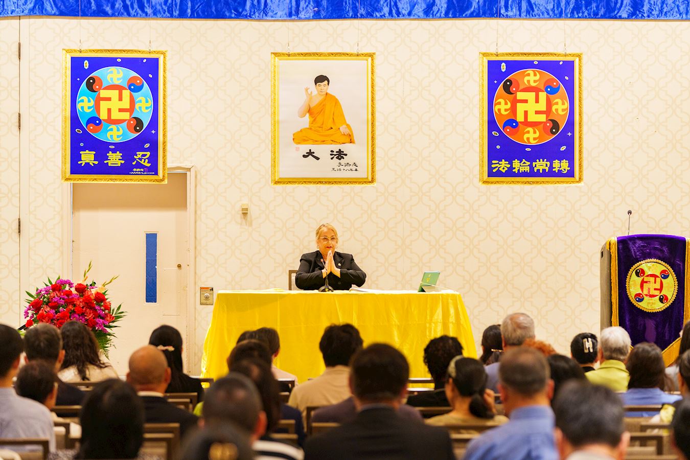 法会发言中,多位学员讲述了在参与举办神韵晚会期间发生的故事和修炼心得。