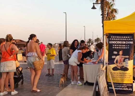 八月十日,西班牙法轮功学员在巴伦西亚马尔瓦罗萨海滩的海滨大道举办反对中共迫害法轮功的征签活动,不少人签名支持并开始学炼法轮功。