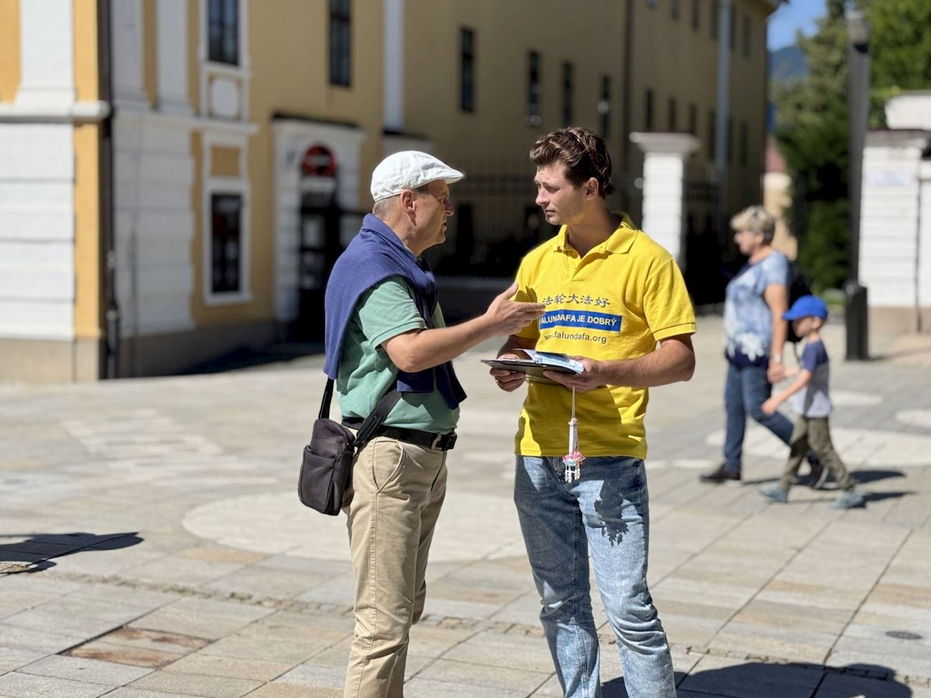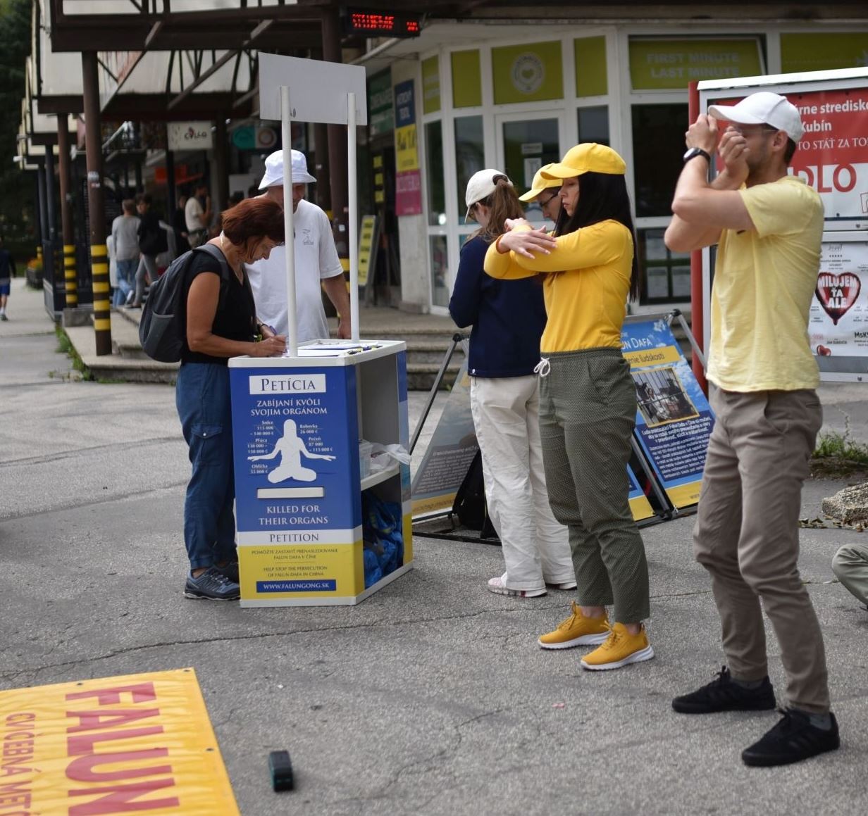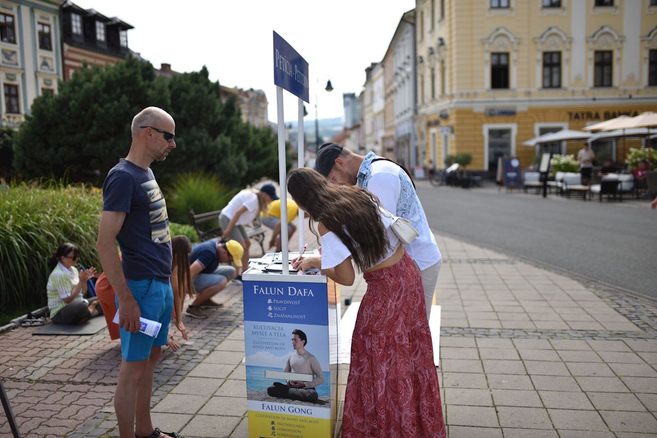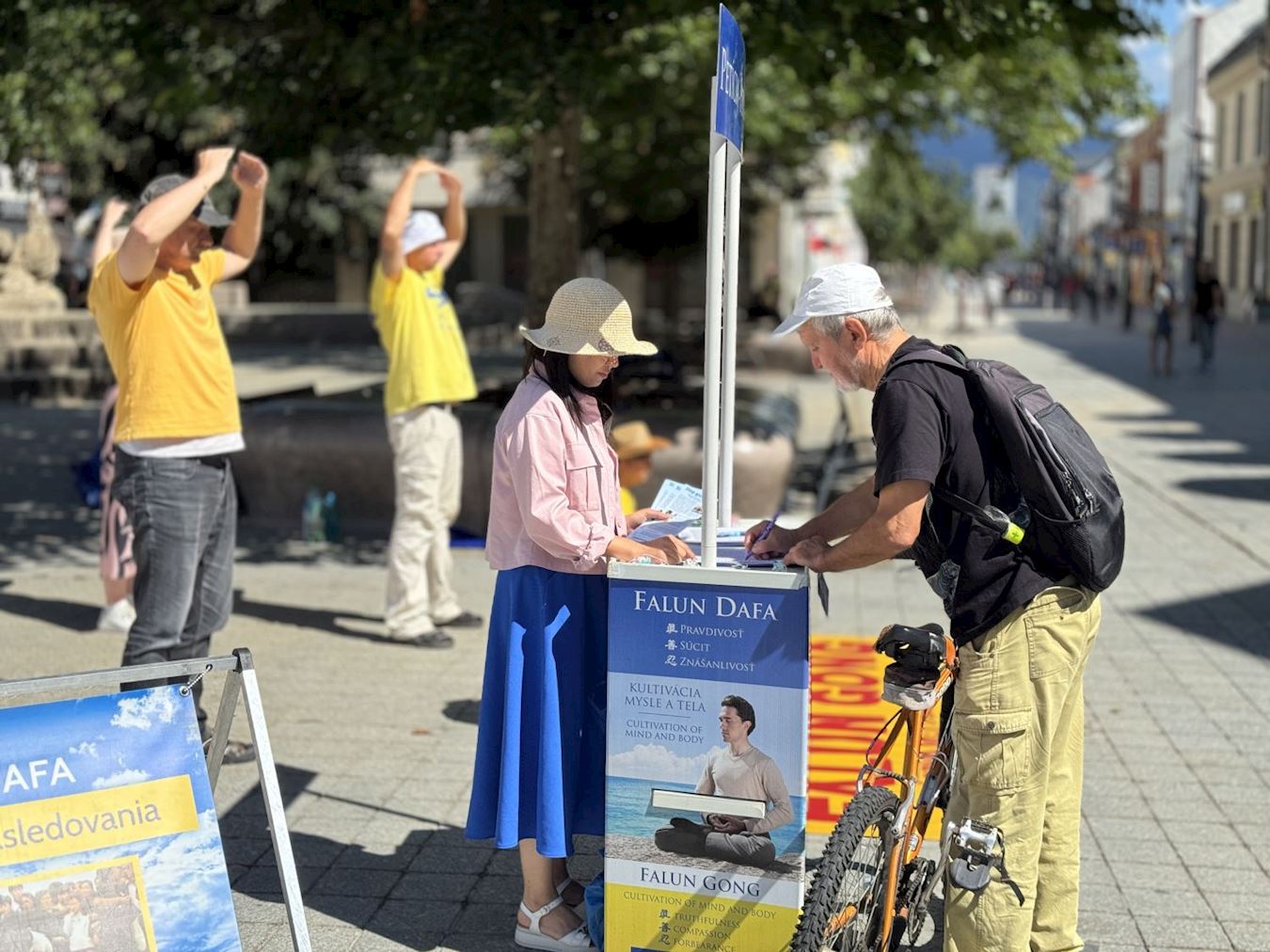 一位路人观看功法演示后很快就签名表示支持,还询问如何在班斯卡·比斯特里察学法轮功。
