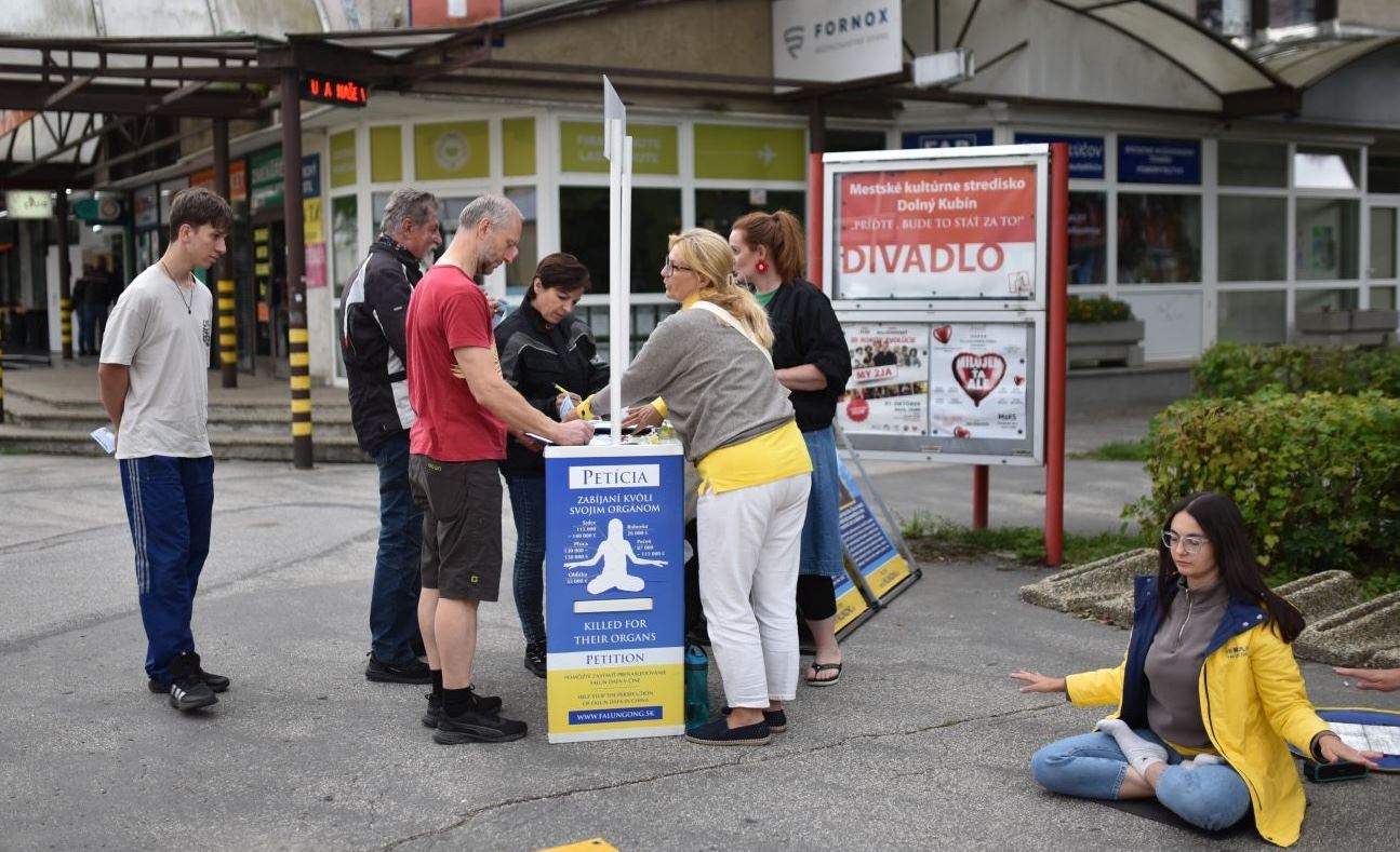 七月二十五日,学员们来到第一站——中部重镇班斯卡·比斯特里察。活动地点在SNP广场,当天阳光明媚,许多居民驻足了解真相并签署了请愿书。