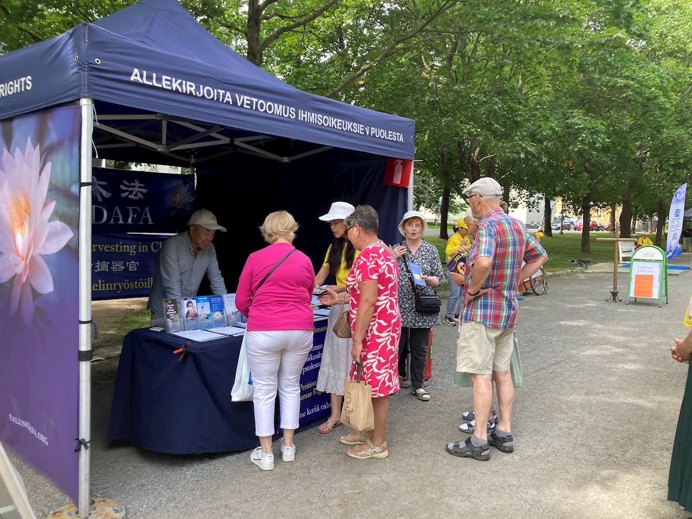 其中一些路人径直走向请愿表签名,因为他们早已了解中共对法轮功的迫害真相。也有些人表示,自己曾在芬兰其他城市或海外见过法轮功学员的活动,并已经签过名。一些驻足的市民对学习功法也表现出兴趣,他们在得知当地集体炼功点后,表示会前去参加。
