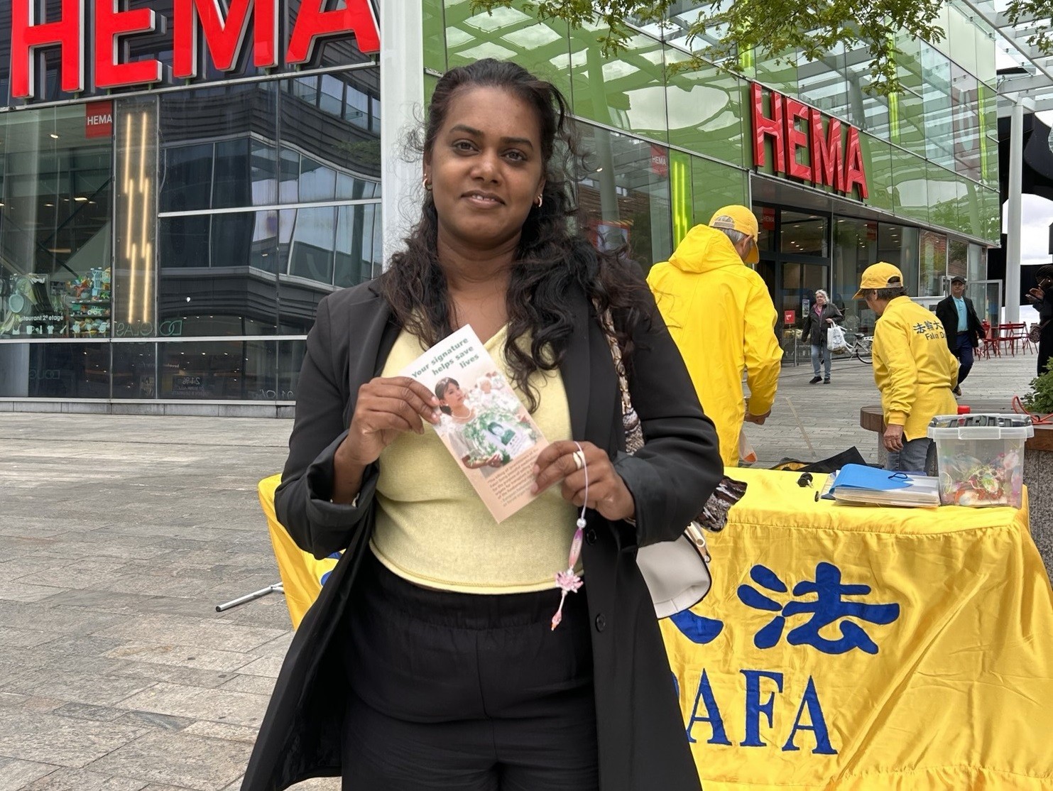蒂比签名支持法轮功反迫害,她表示:“我签名支持你们,反对活摘器官;这么美好的信仰和修炼,不应该被禁止;活摘器官,必须制止,这不是人类的行为!”
