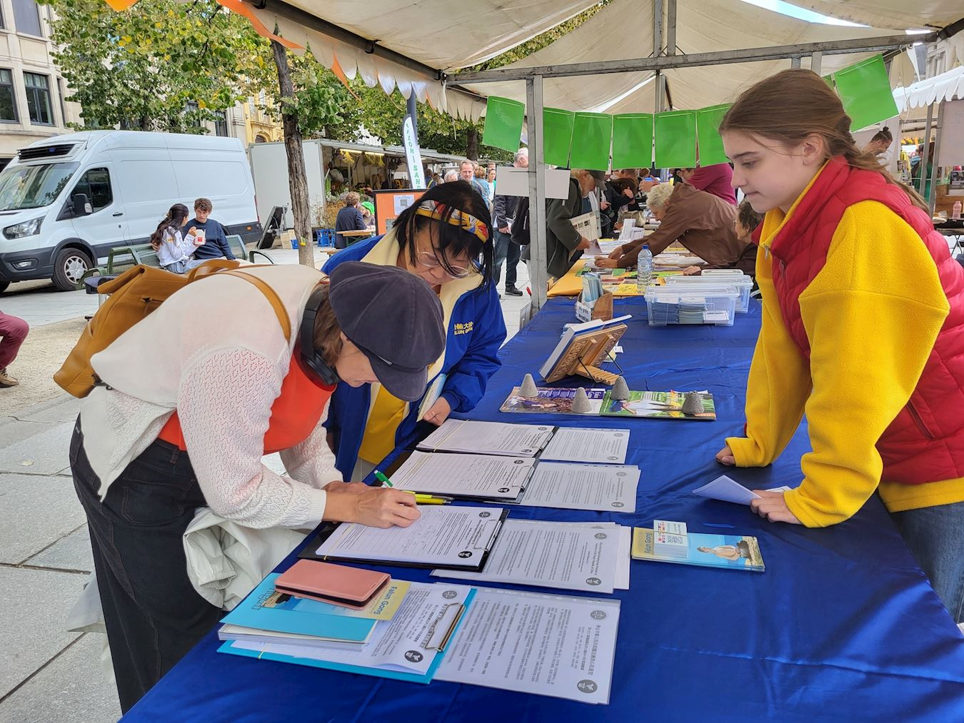 ![]() 图1~10:二零二五年九月十三日,比利时法轮功在根特市文化市集上弘法,并征集反迫害签名。 |
