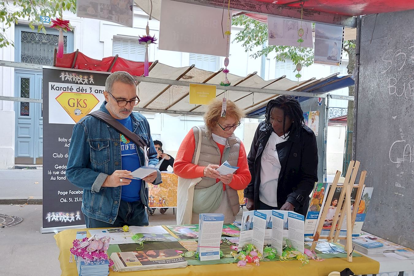 九月六日,法轮功学员参加了巴黎十一区的协会论坛,不少民众来到展位前拿取法轮功简介,并与学员交谈,了解学炼方法。很多交谈都是非常愉快的。