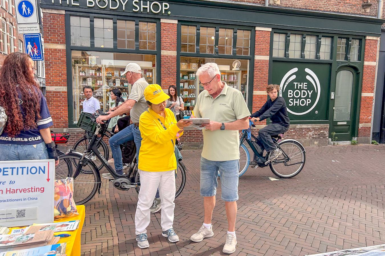 【明慧网二零二五年九月十七日】“我在英国也看到过跟你们穿的同样衣服的人,也在讲同样的事。我还想多听一些,工作日你们还会在这里吗?”一位荷兰代尔夫特民众說。