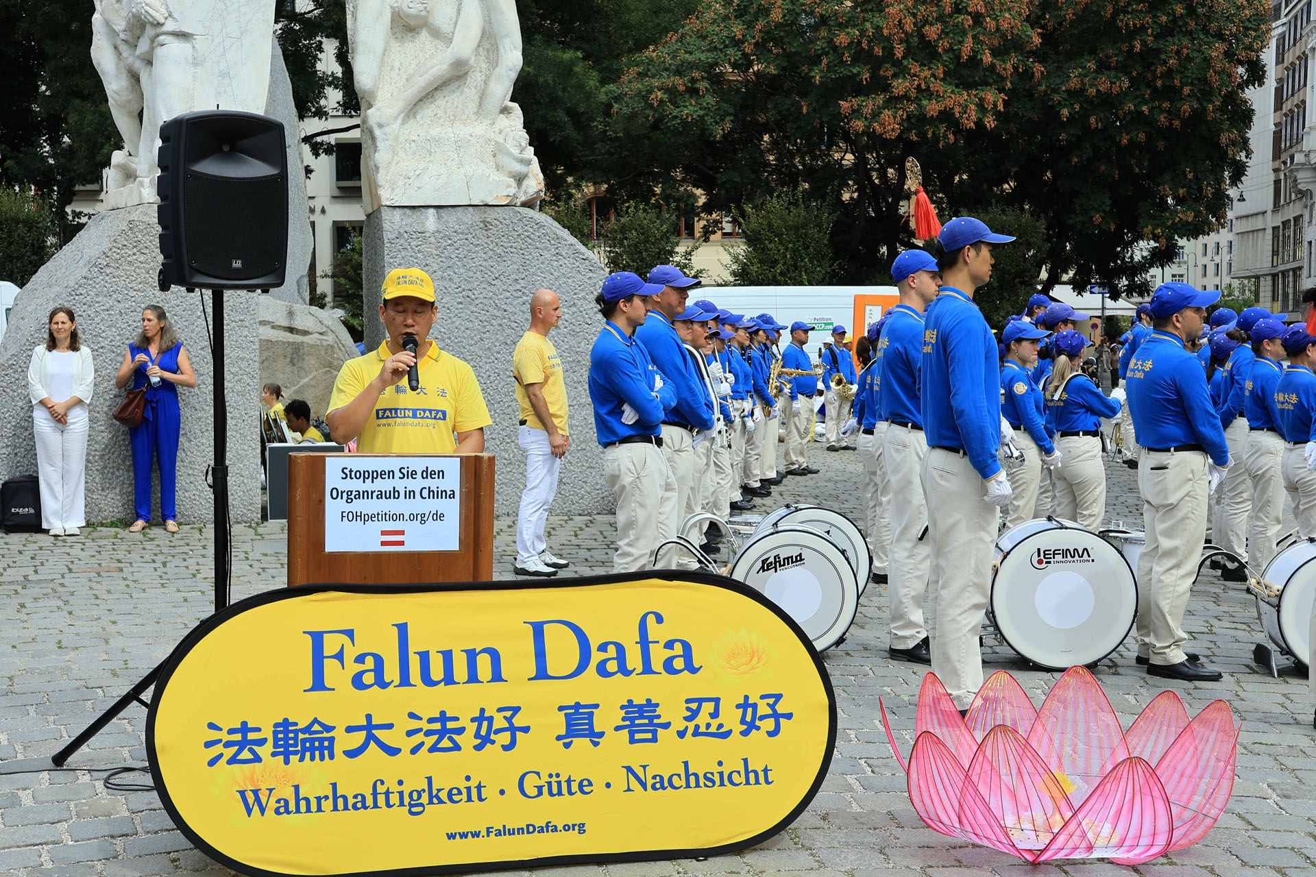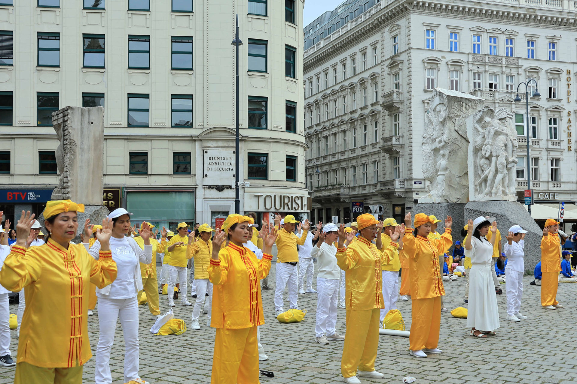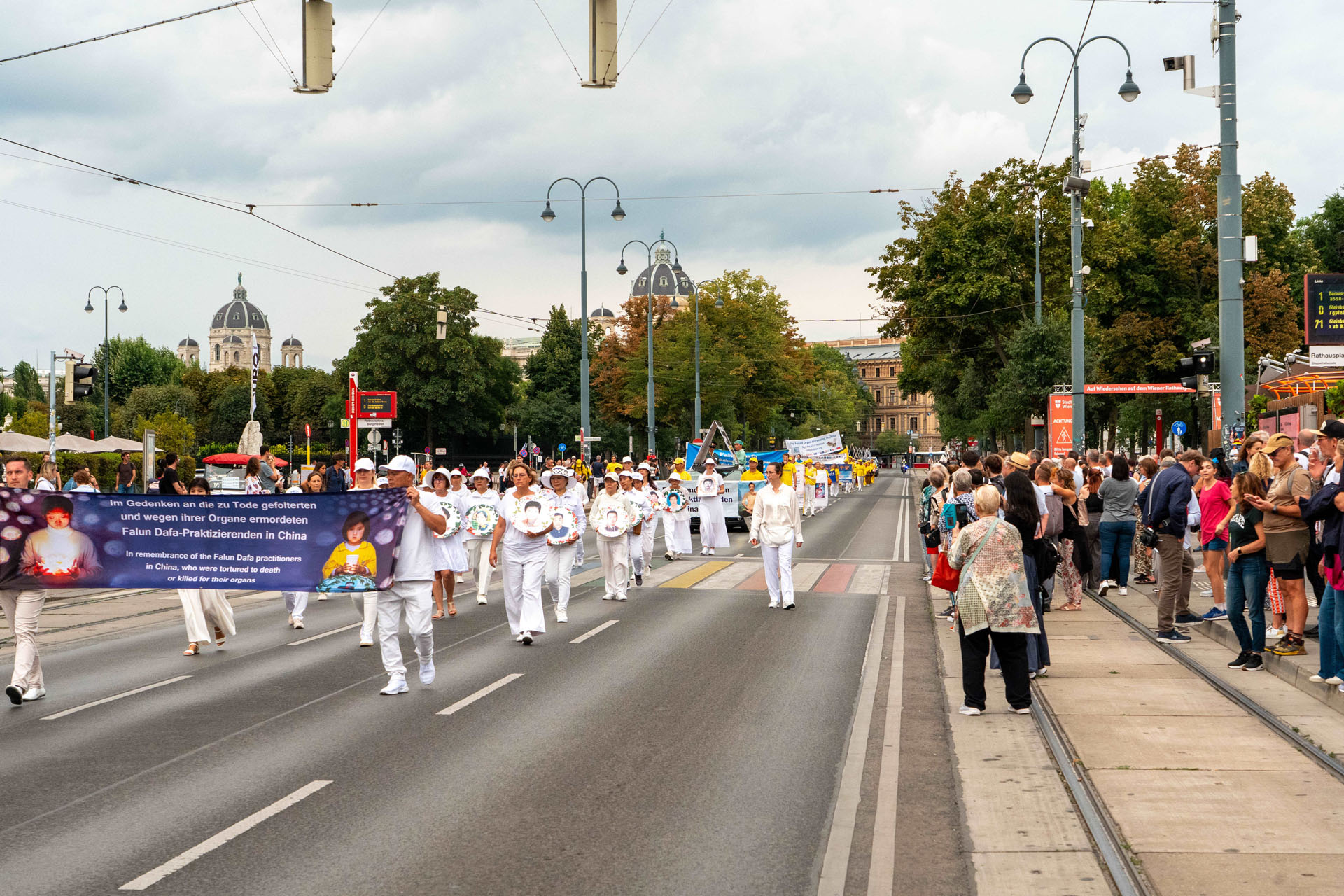 当天,法轮功学员在维也纳市中心赫尔穆特·齐尔克广场(Helmut-Zilk-Platz)举办了信息日活动,下午游行队伍从此广场出发,途经国家歌剧院,议会大厦,弗赖翁广场(Freyung)等著名景点,通过环城大道(Ringstrasse),格拉本大街(Graben)克恩滕大街(Kärntner Strasse)等购物步行街。