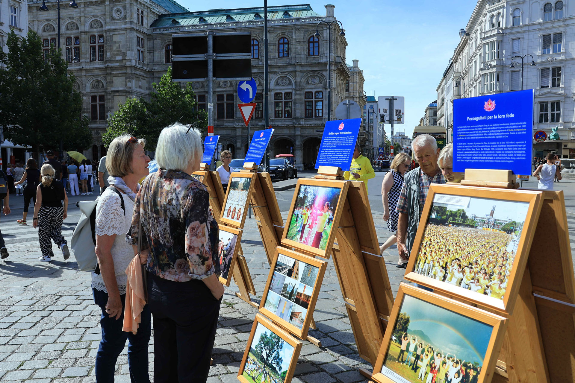 她从波兰移居维也纳已经四十年,但曾经的经历让她明白迫害的严重:“我来自一个共产主义国家,在波兰也经历过这种情况。虽然不象你们(中国)那里那么严重,但我还是能理解。”她缓缓说道:“没有人看到他们(法轮功学员)承受的痛苦,没有人为他们发声,政界虽然知道,但却保持沉默。”但看到活动现场,她略感到欣慰的说:“在这里他们能自由地发声。”