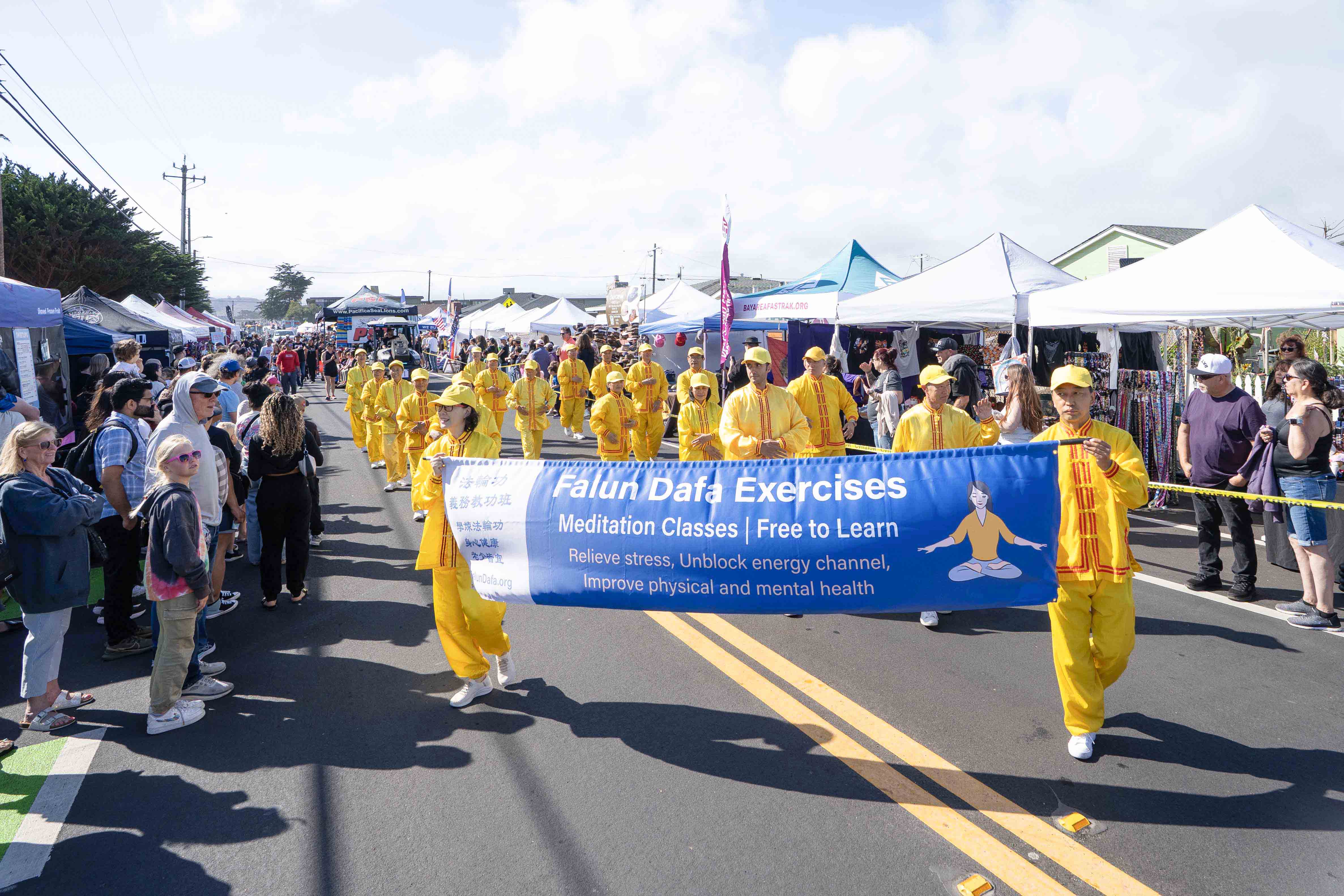图1~4:二零二五年九月二十七日,美国旧金山法轮功学员参加在帕西菲卡市举行的雾节游行。
