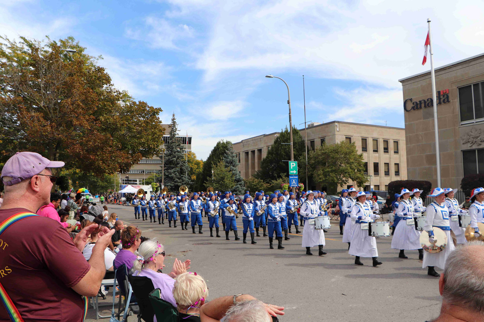 由法轮功学员组成的天国乐团和腰鼓队再次受邀参加游行,作为游行队伍中为数不多的华人团体,他们的出现格外引人注目,不仅赢得观众热烈掌声,更在观众自发组织的评分中获得满分好评。