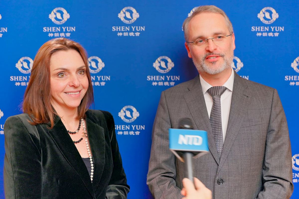 ![]() 图11:二零二六年一月九日晚,波兰一家律师事务所的创始人兼管理合伙人马尔钦·斯沃姆斯基(Marcin Słomski,右)与医生安娜·梅克-斯沃姆斯卡(Anna Mec-Słomska)一起在罗兹观赏了神韵演出。(新唐人电视台) |