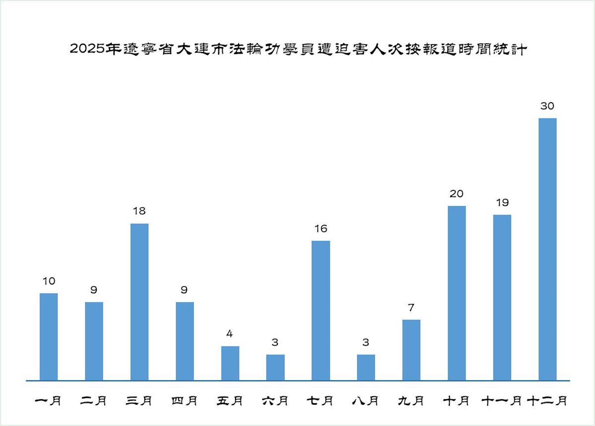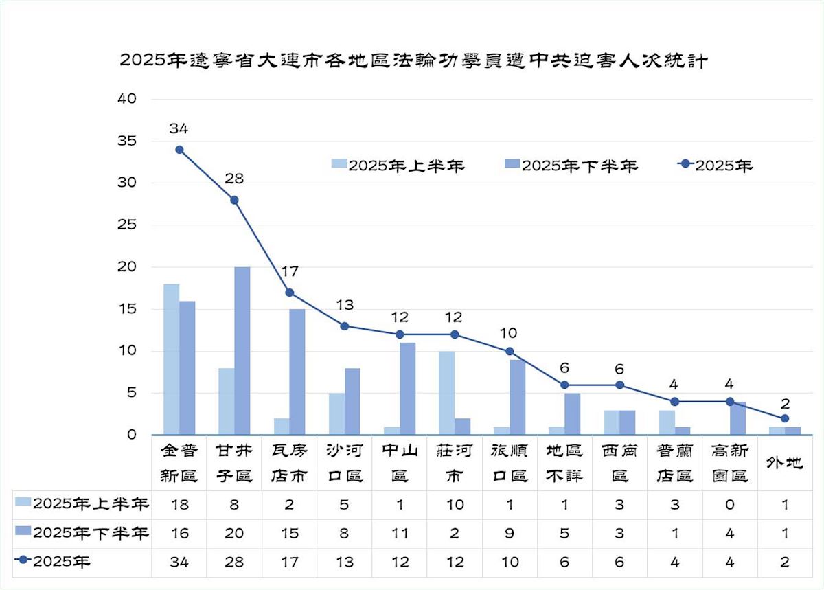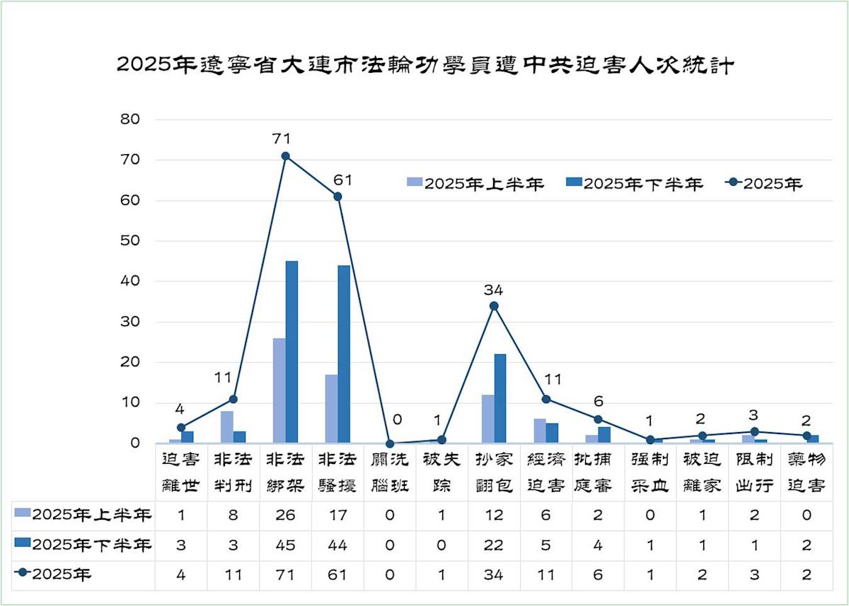 图1:2025年辽宁省大连市法轮功学员遭中共迫害人次统计