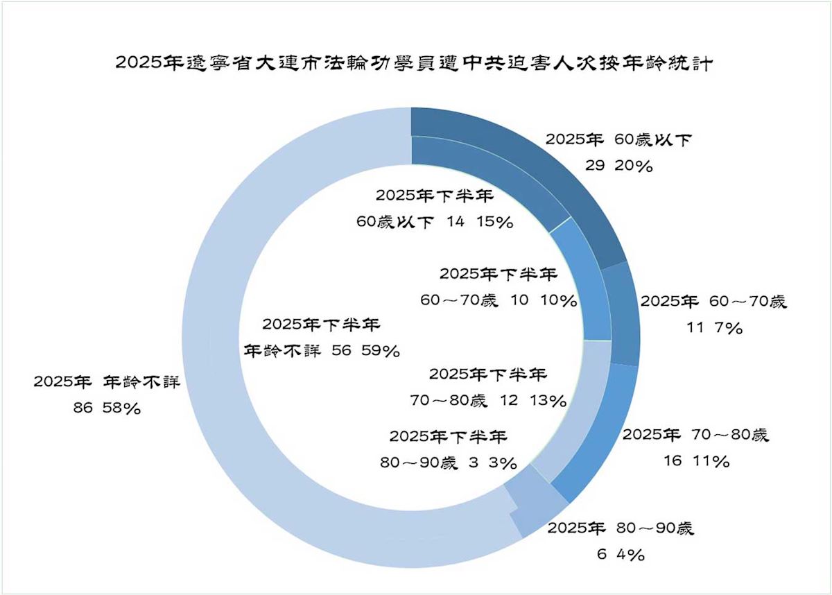 图3:2025年辽宁省大连市法轮功学员遭迫害人次按年龄统计