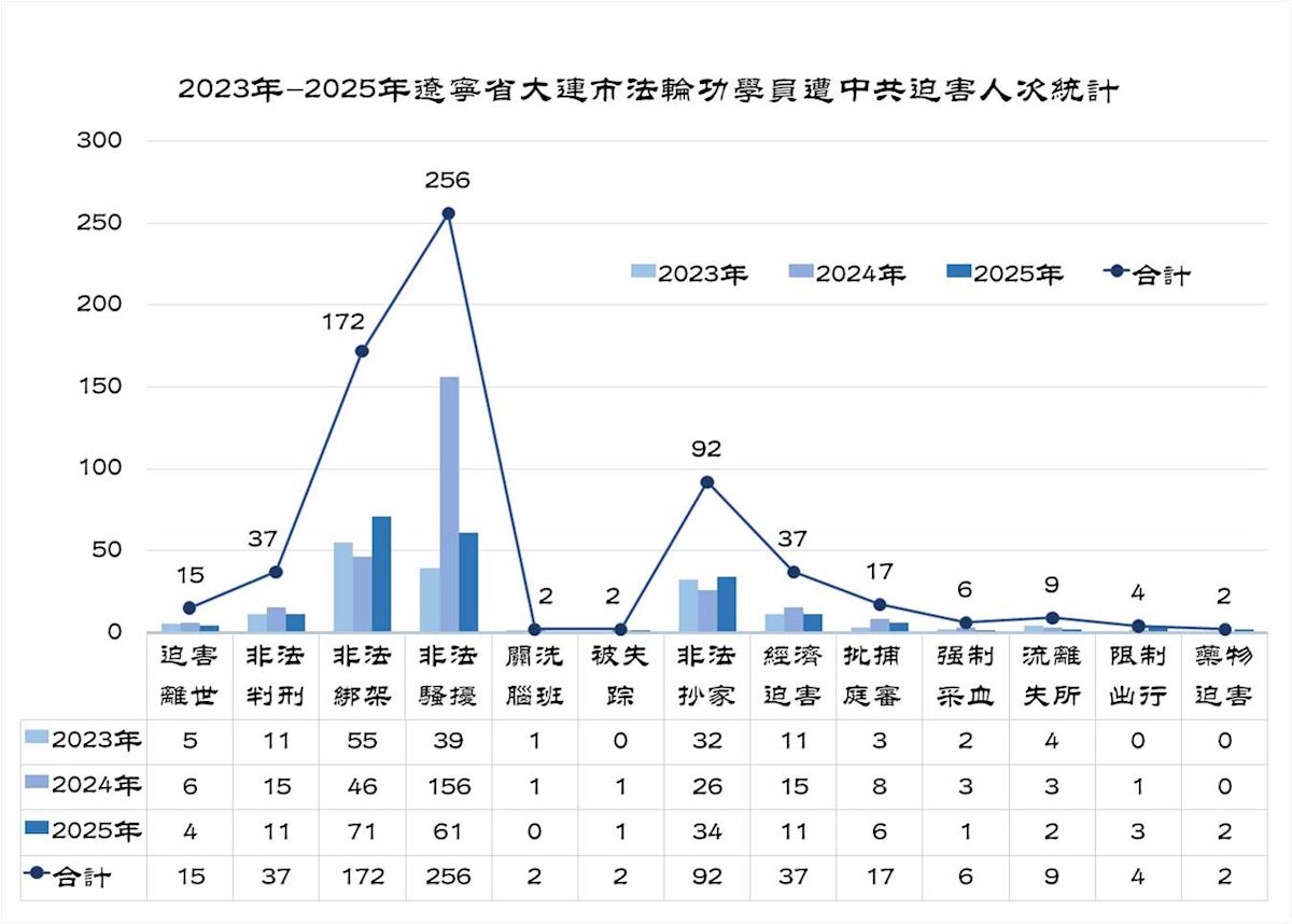 '图:2023年-2025年辽宁省大连市法轮功学员遭中共迫害人次统计'