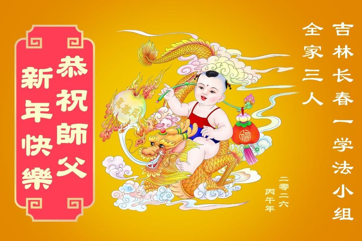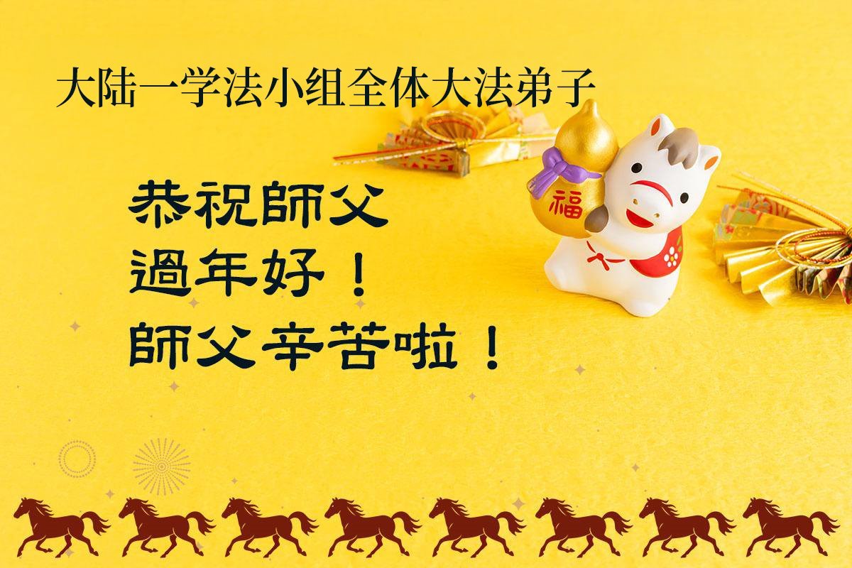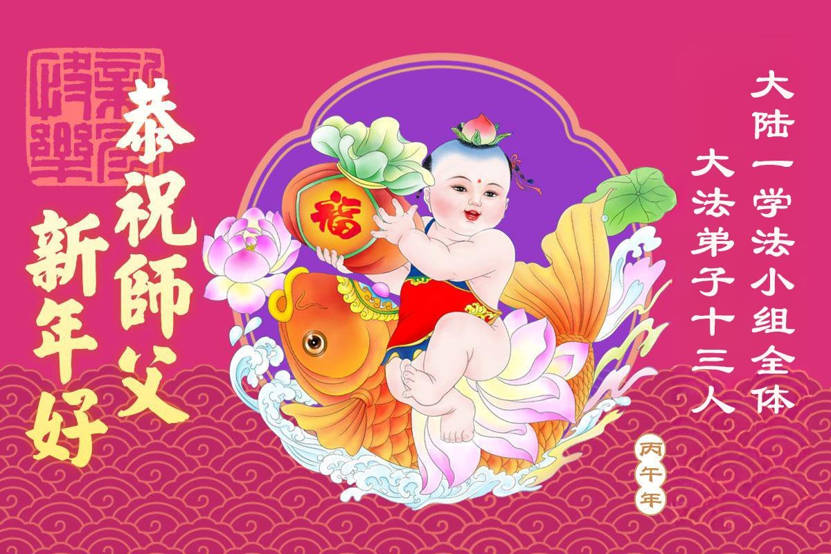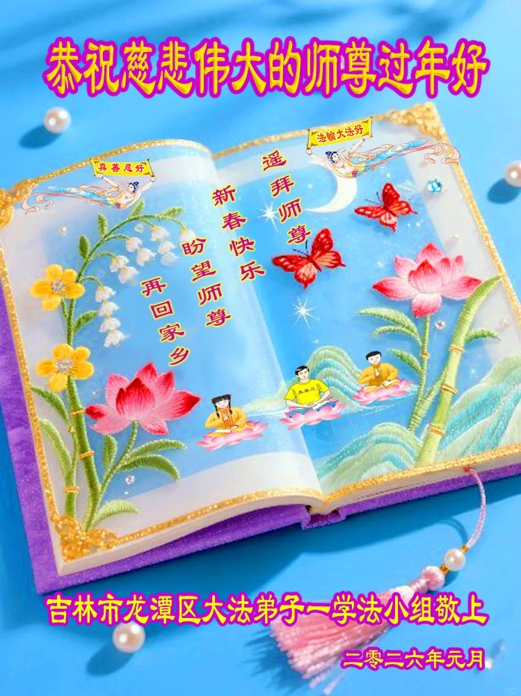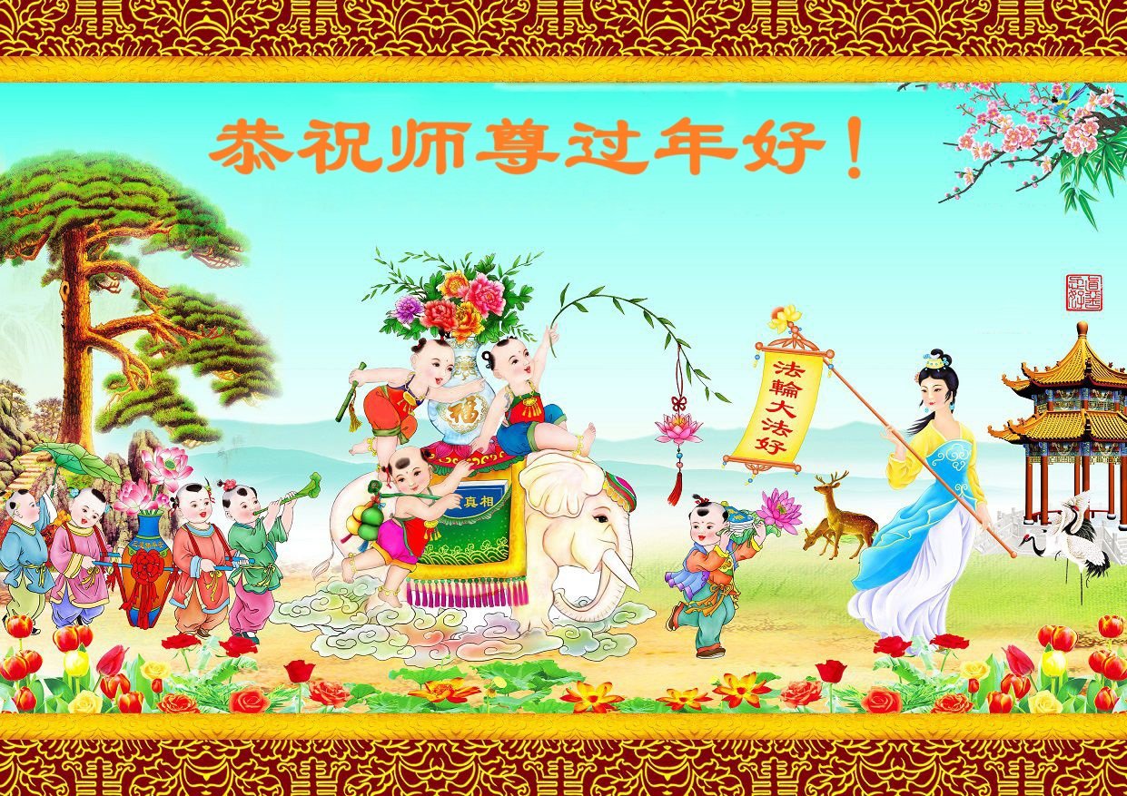 恭祝慈悲伟大的师尊过年好!弟子们成立学法小组时,想到没被迫害之前师尊当年给弟子们留下的炼功场、学法场,那壮观的景象,现在还依然历历在目,大家在一起学法、炼功、家庭和睦、走路生风,整个社会都处于和睦状态……弟子们会多学法、以法为师、共同精進、共同配合,做好三件事,圆满随师还。