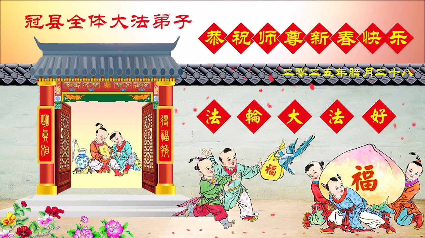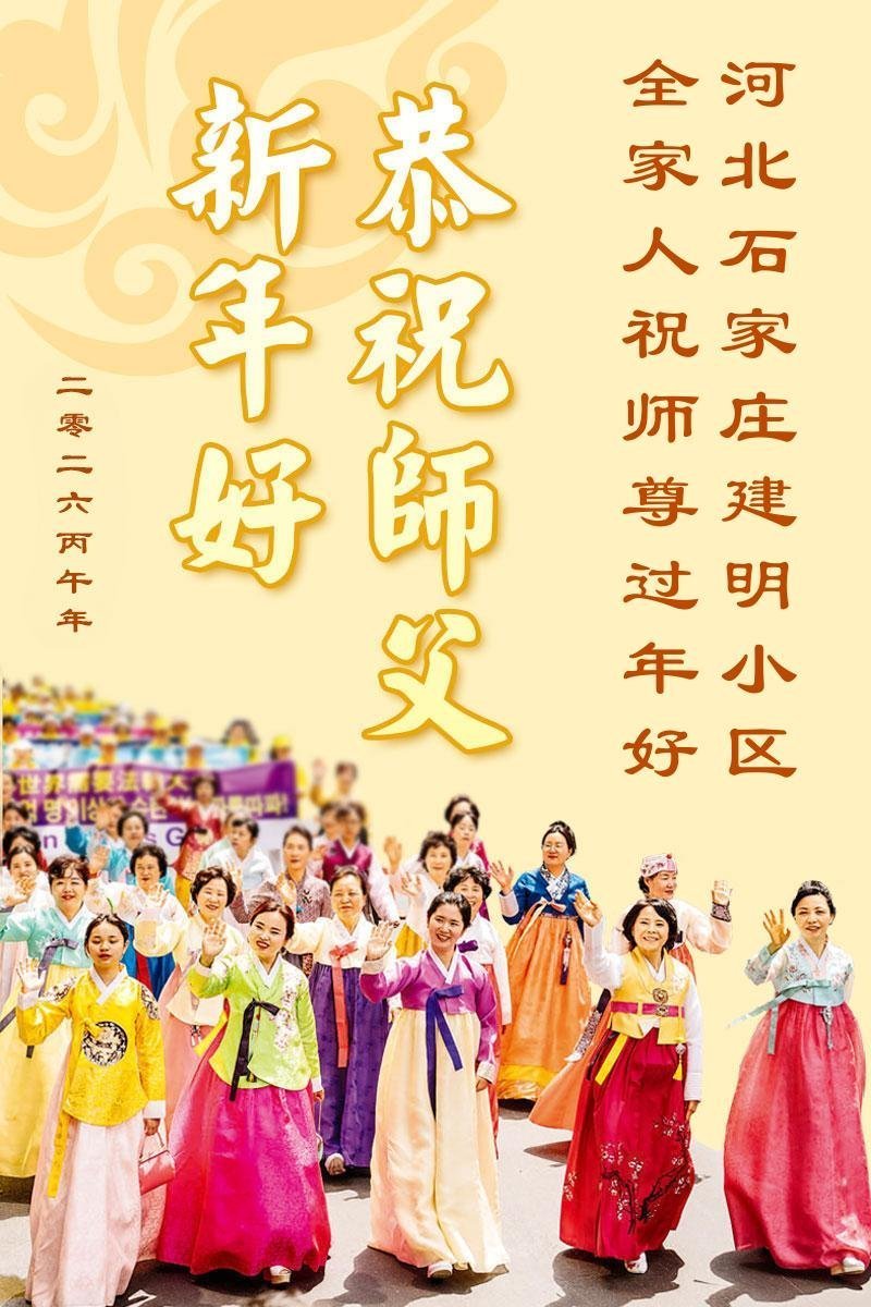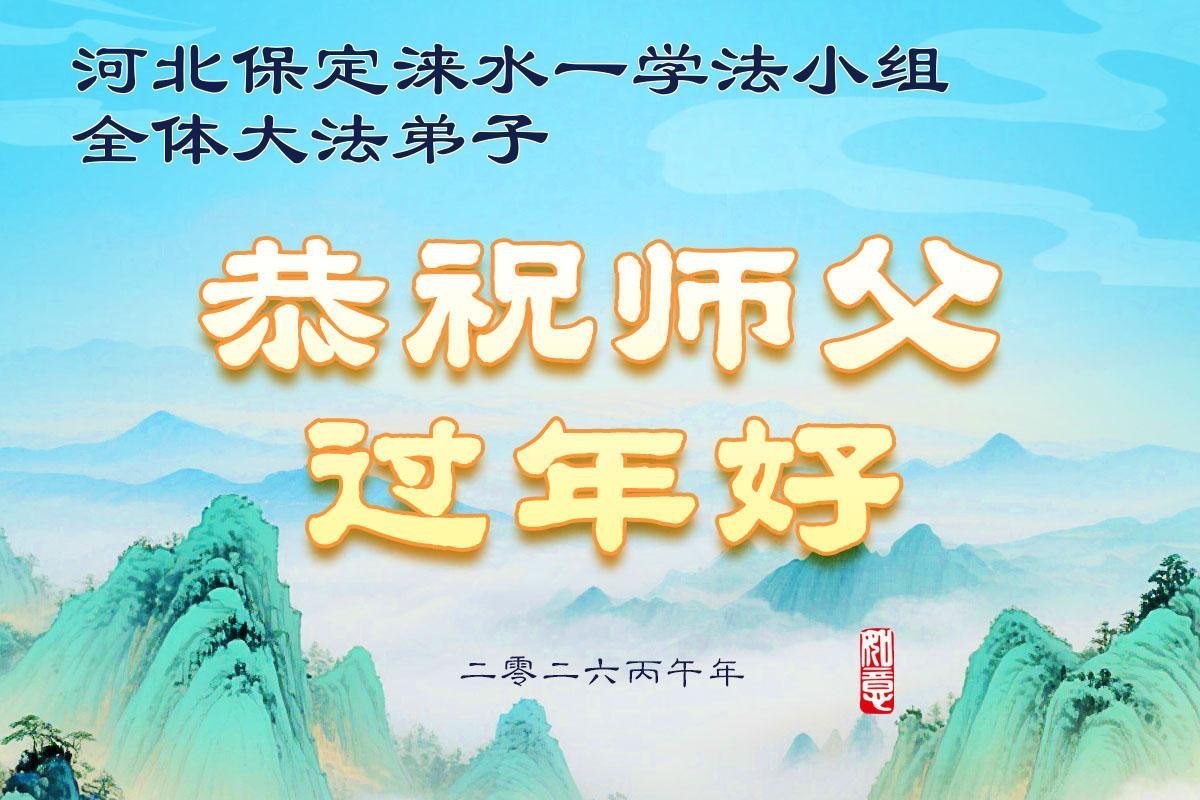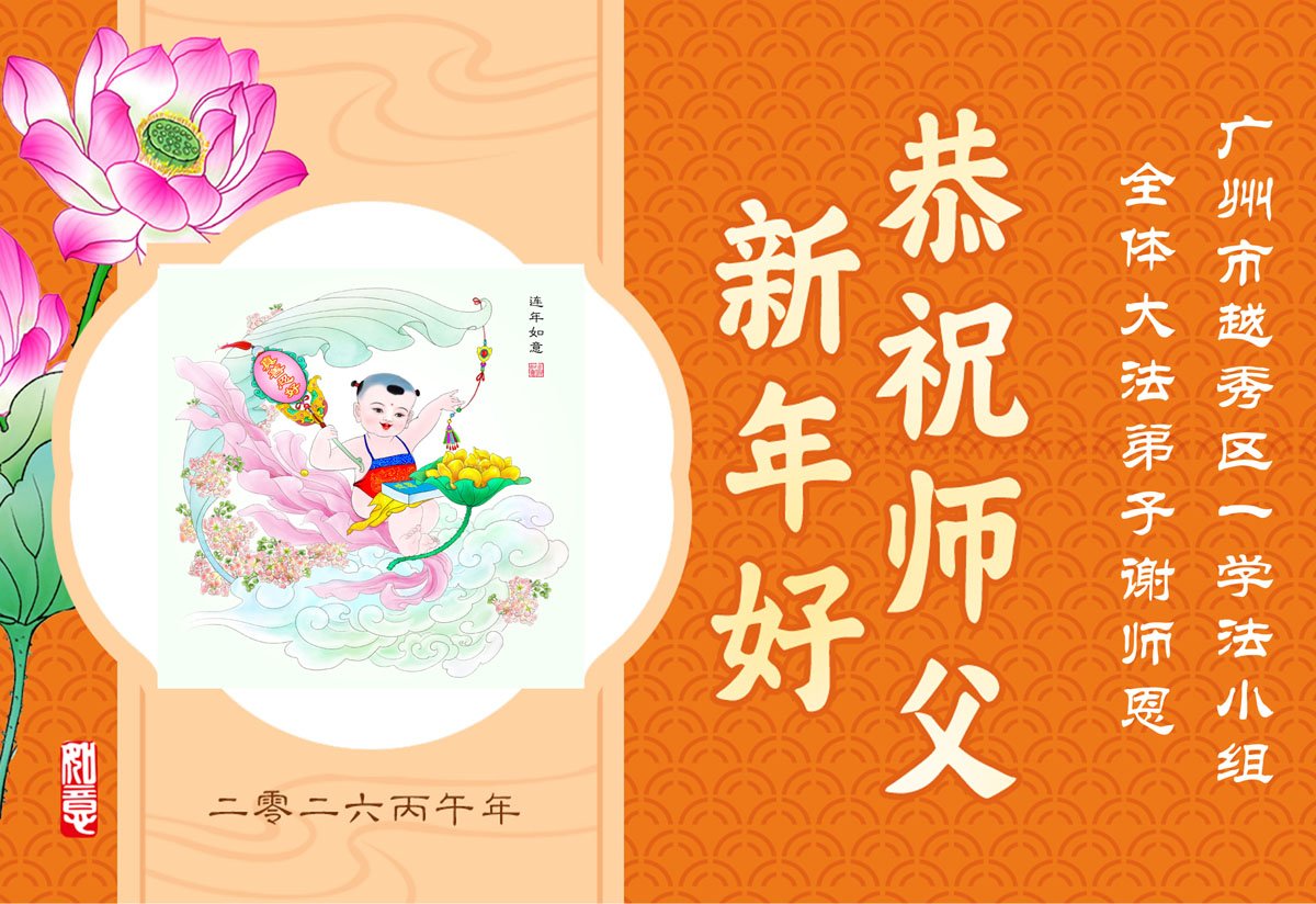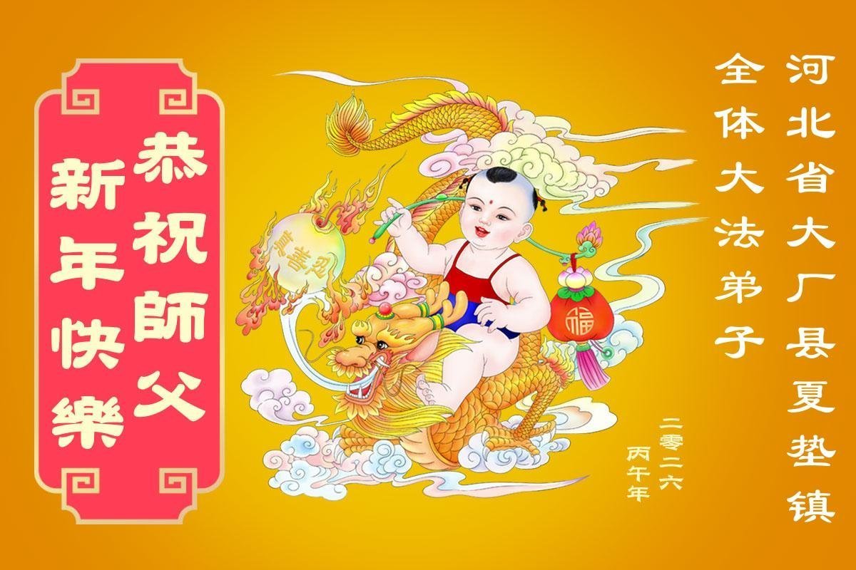 恭祝慈悲伟大的师尊过年好!弟子们成立学法小组时,想到没被迫害之前师尊当年给弟子们留下的炼功场、学法场,那壮观的景象,现在还依然历历在目,大家在一起学法、炼功、家庭和睦、走路生风,整个社会都处于和睦状态……弟子们会多学法、以法为师、共同精進、共同配合,做好三件事,圆满随师还。