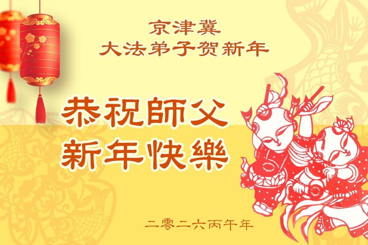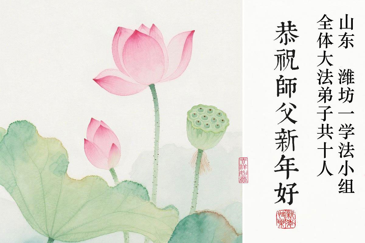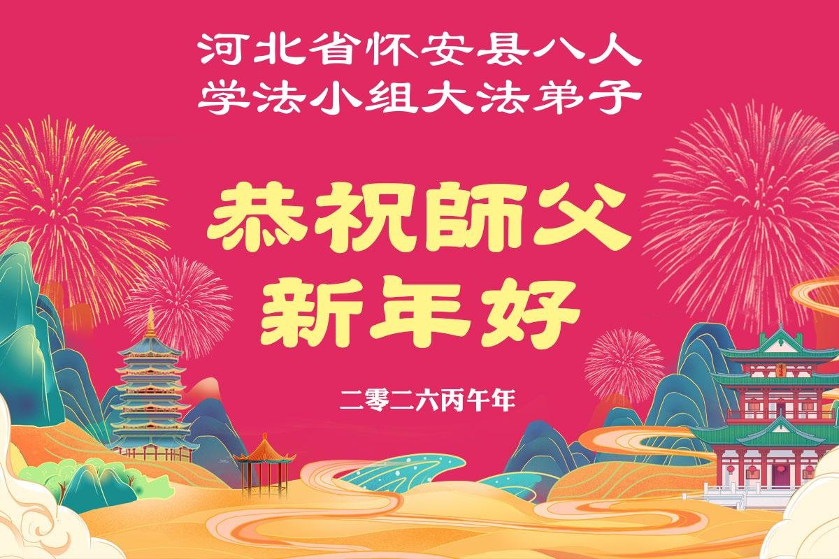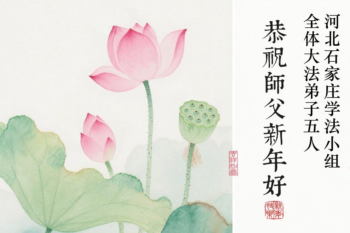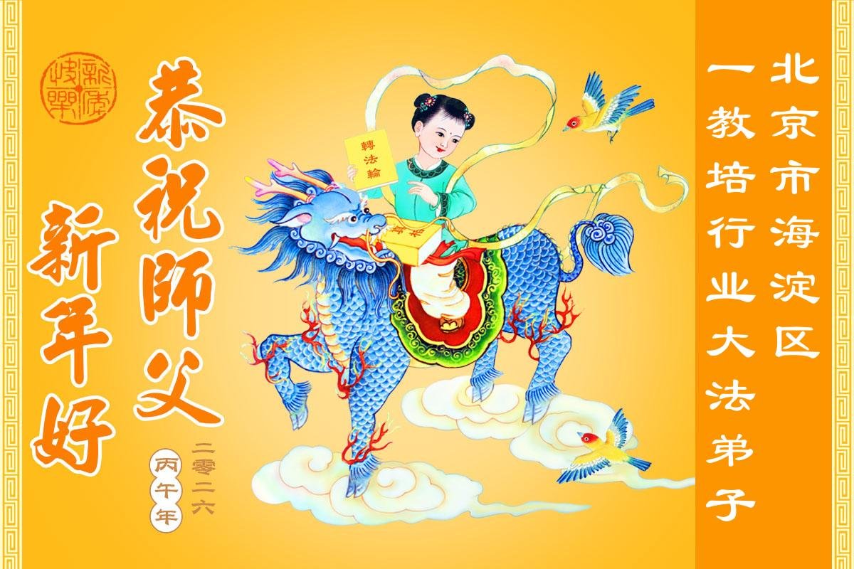 在新的一年到来之际,我们北京学法小组全体大法弟子向慈悲伟大的师尊拜年!师父您好!您辛苦了!我们有信心和决心在新的一年遵照师尊的谆谆教导,修去人心,做好三件事,学法修心向内找,讲真相,做个名副其实的大法弟子,跟师父回家。