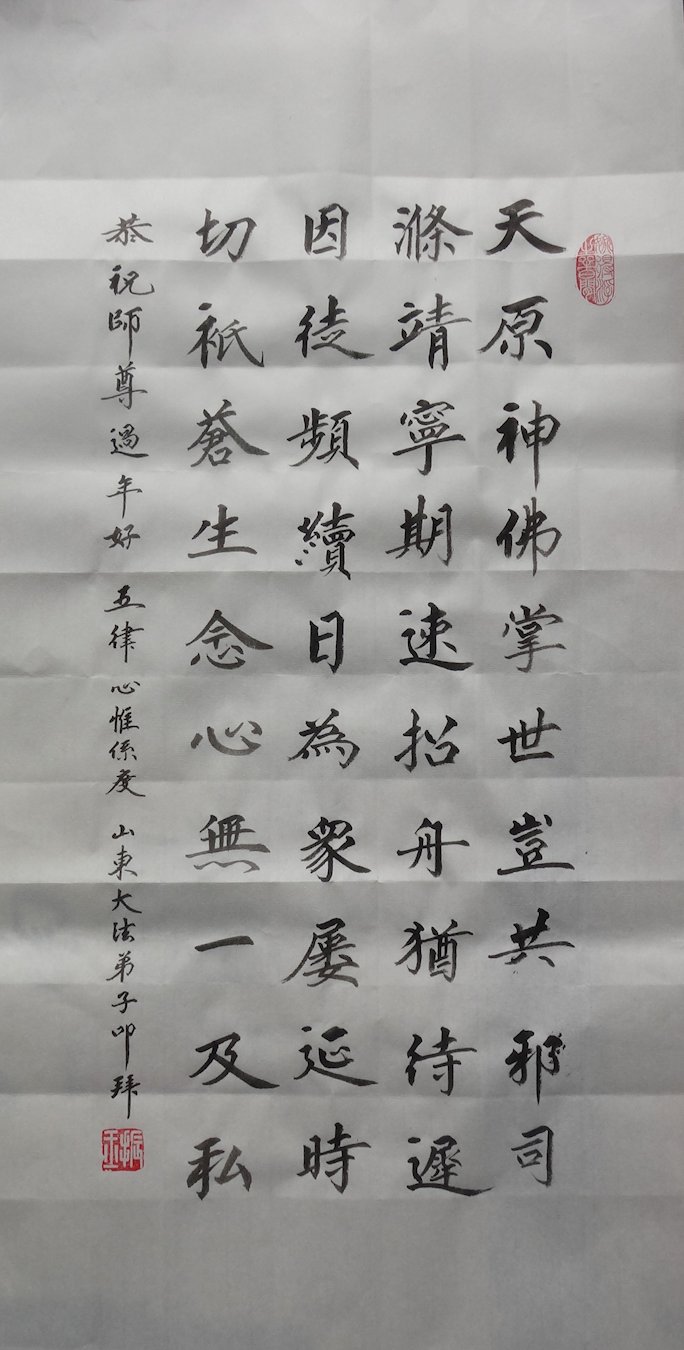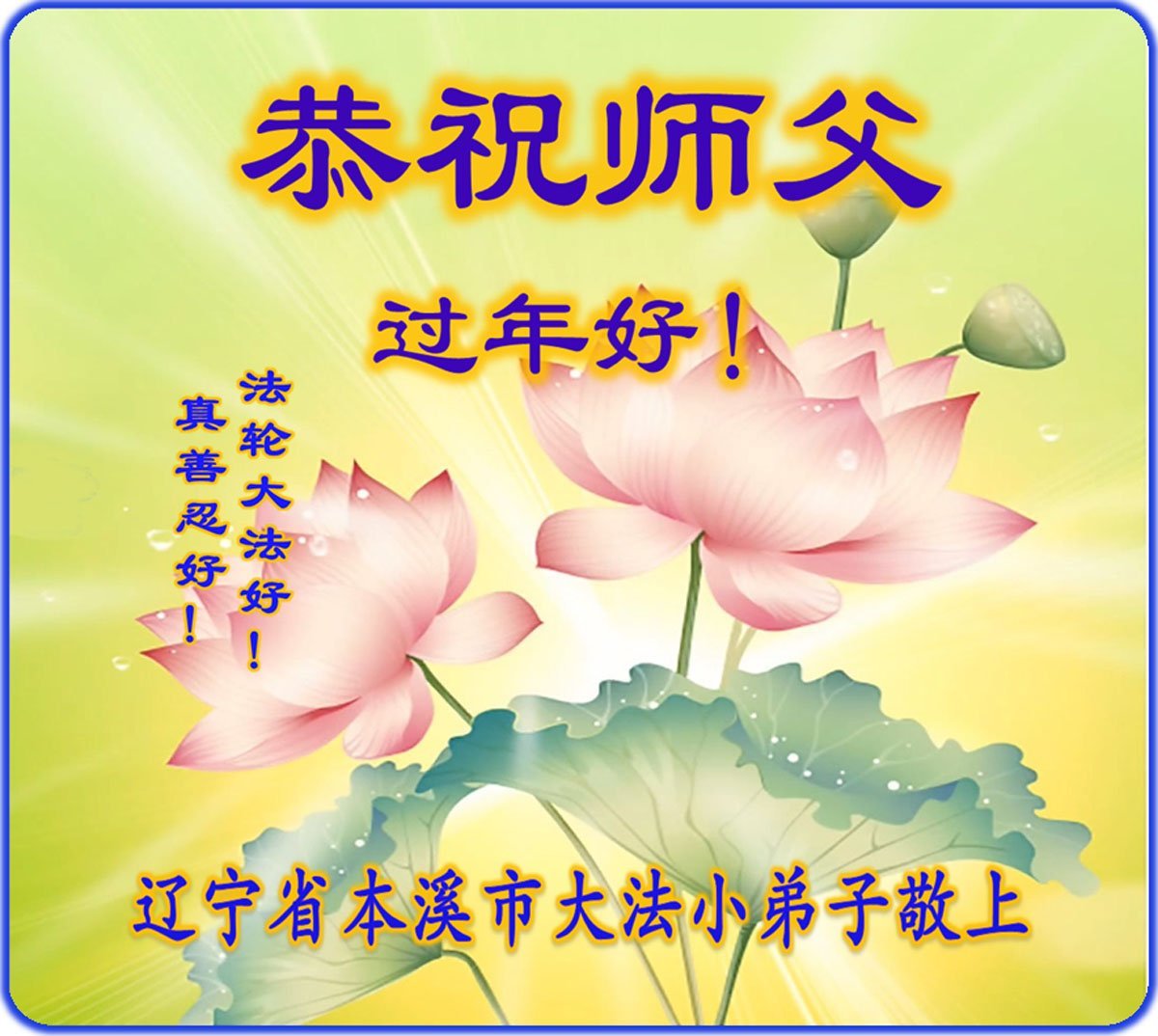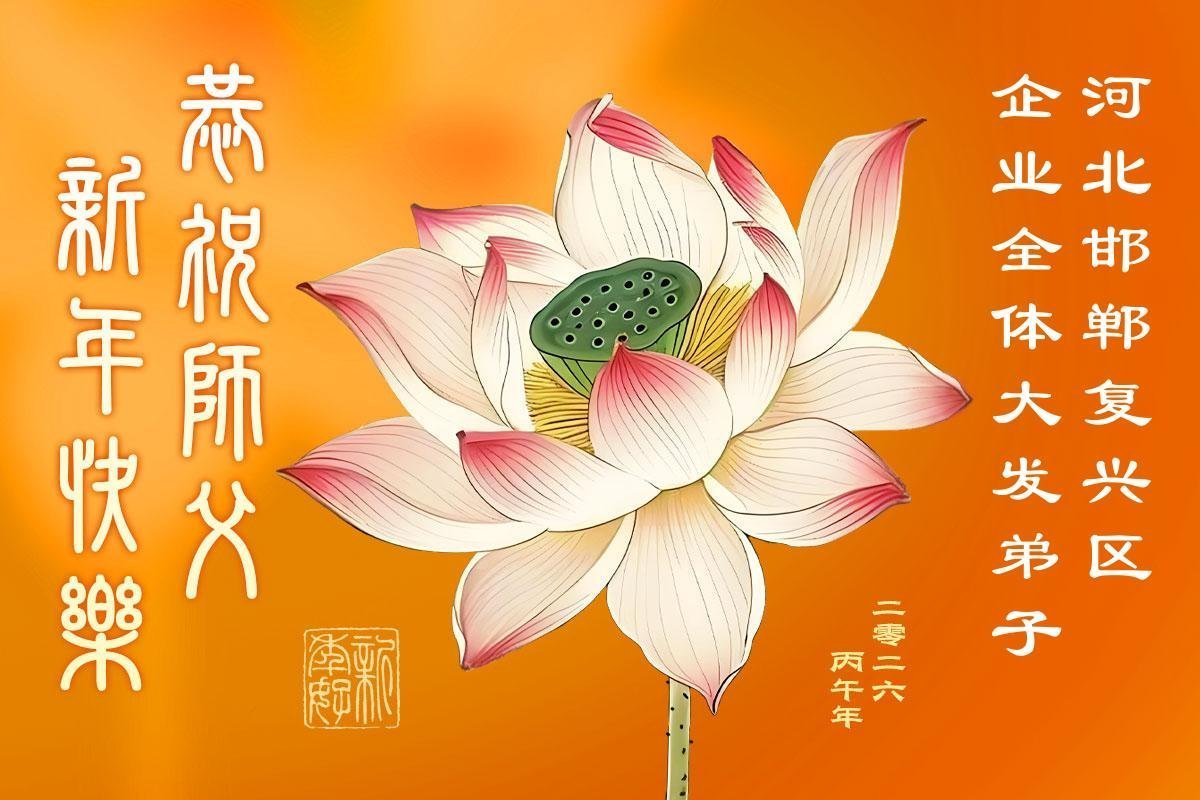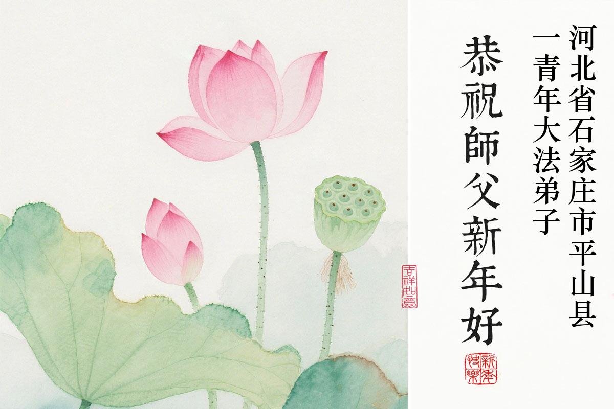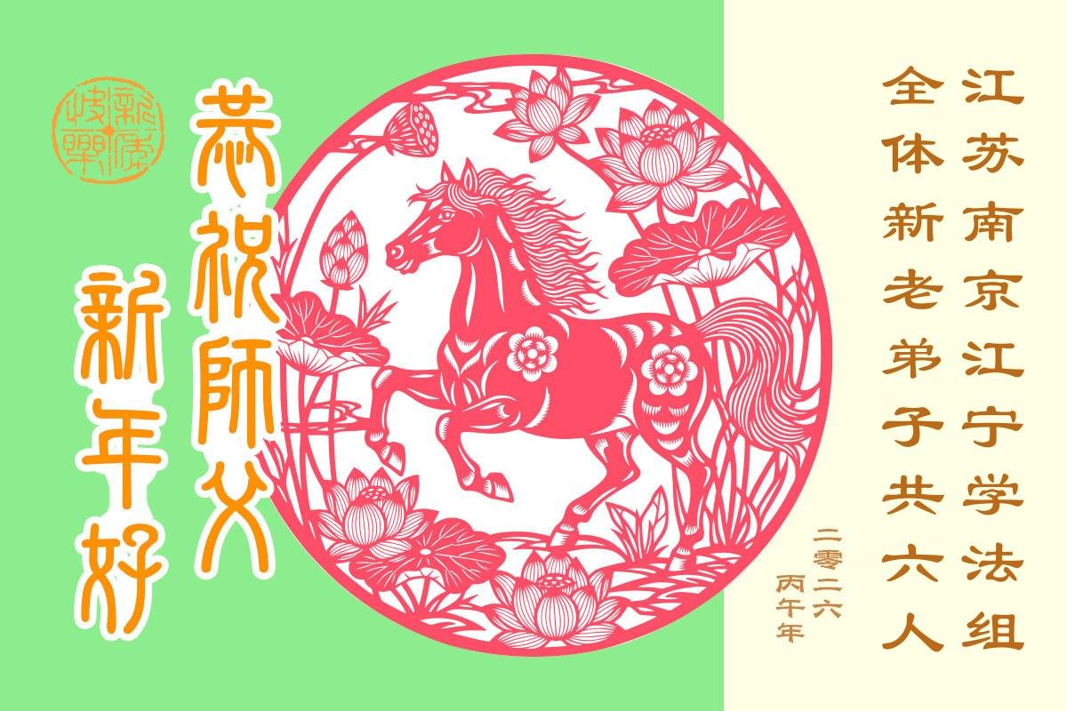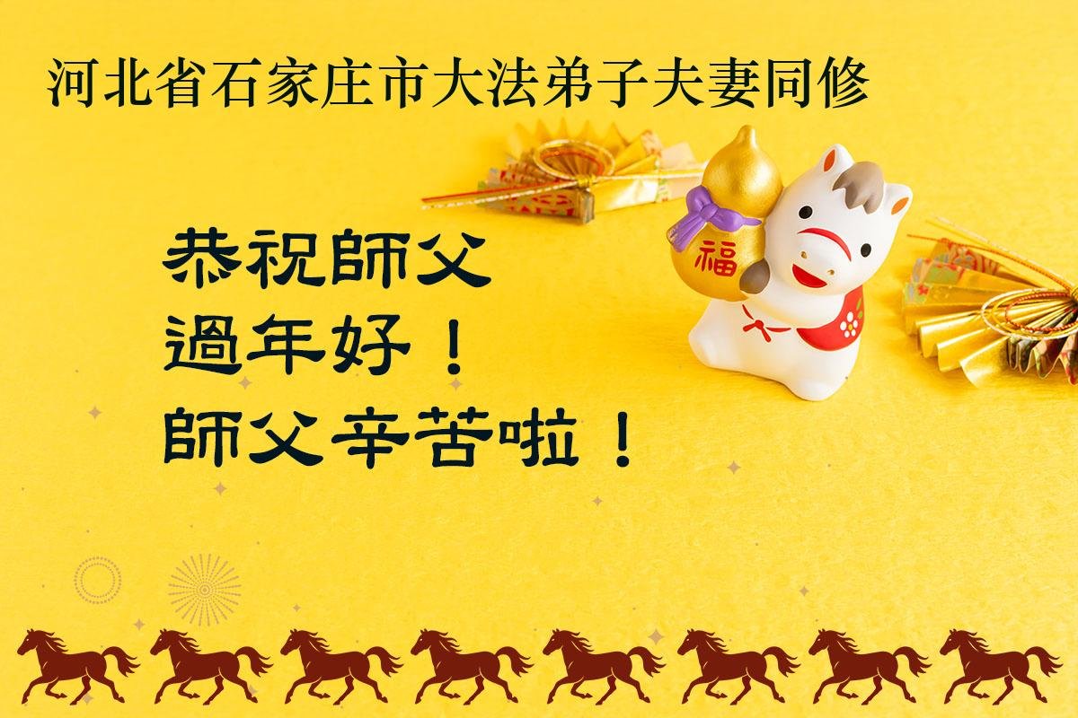 在新的一年到来之际,我们北京学法小组全体大法弟子向慈悲伟大的师尊拜年!师父您好!您辛苦了!我们有信心和决心在新的一年遵照师尊的谆谆教导,修去人心,做好三件事,学法修心向内找,讲真相,做个名副其实的大法弟子,跟师父回家。
