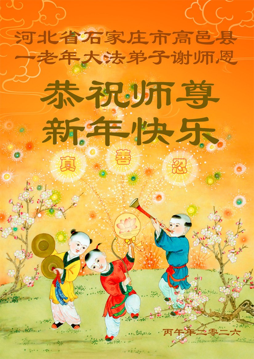 慈悲伟大的师父,弟子们恭贺师父新春快乐!在这助师救人的最后时刻,我们一定要抓紧时间学好法,抓紧时间讲真相多救人、同时多发正念,完成自己的历史使命,圆满随师还!