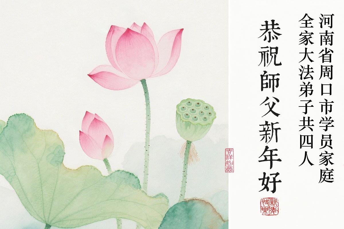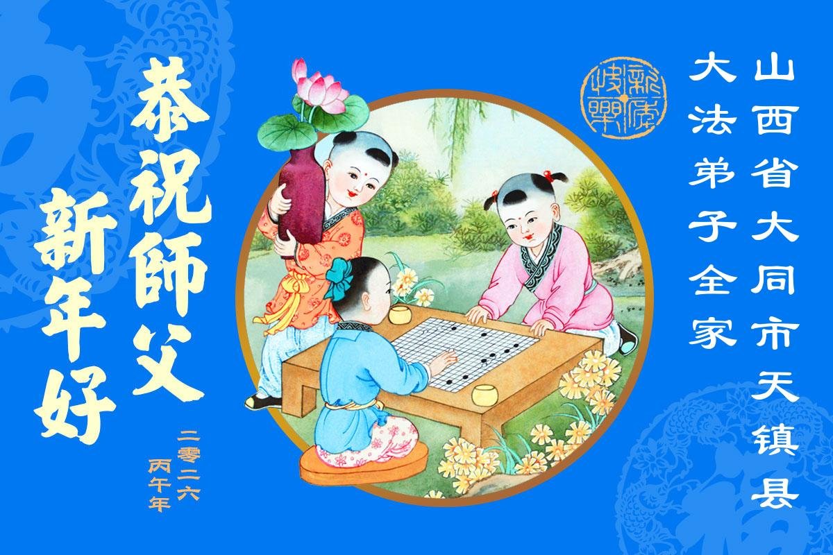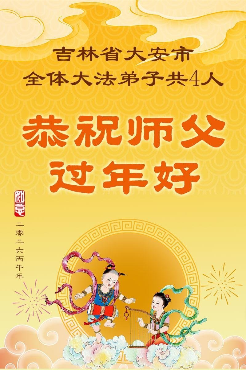 感谢师父对弟子们时时刻刻的看护!为了我们这些在外地的大法弟子不至于落下,安排机缘让我们天南海北的大法弟子能够相识,能在一起学法、修炼。我们都无比的感恩师父给我们这个机会,谢谢师父!弟子们也会把握好这个机会,精進实修,走好师父给安排的路。师父为弟子们的修炼操尽了心,费尽了心血,一步一步的引领着我们走好修炼的路。没有语言能表达弟子对师父的感恩!师父您辛苦了!谢谢师父!新年到来的时刻,我们在外地的学法小组四人给师父拜年了!